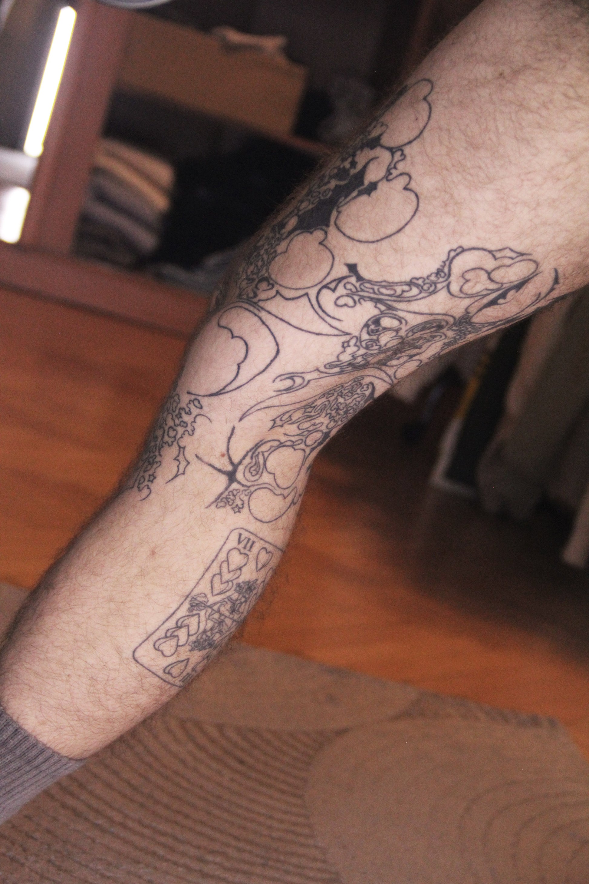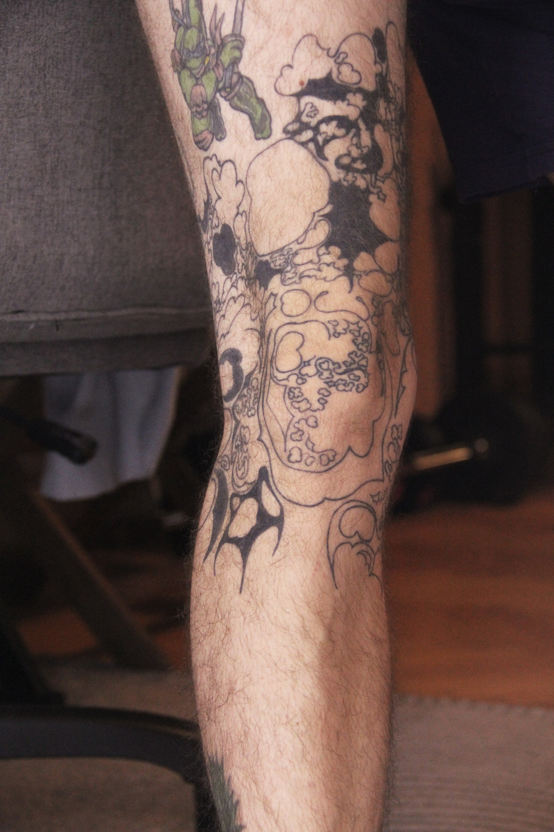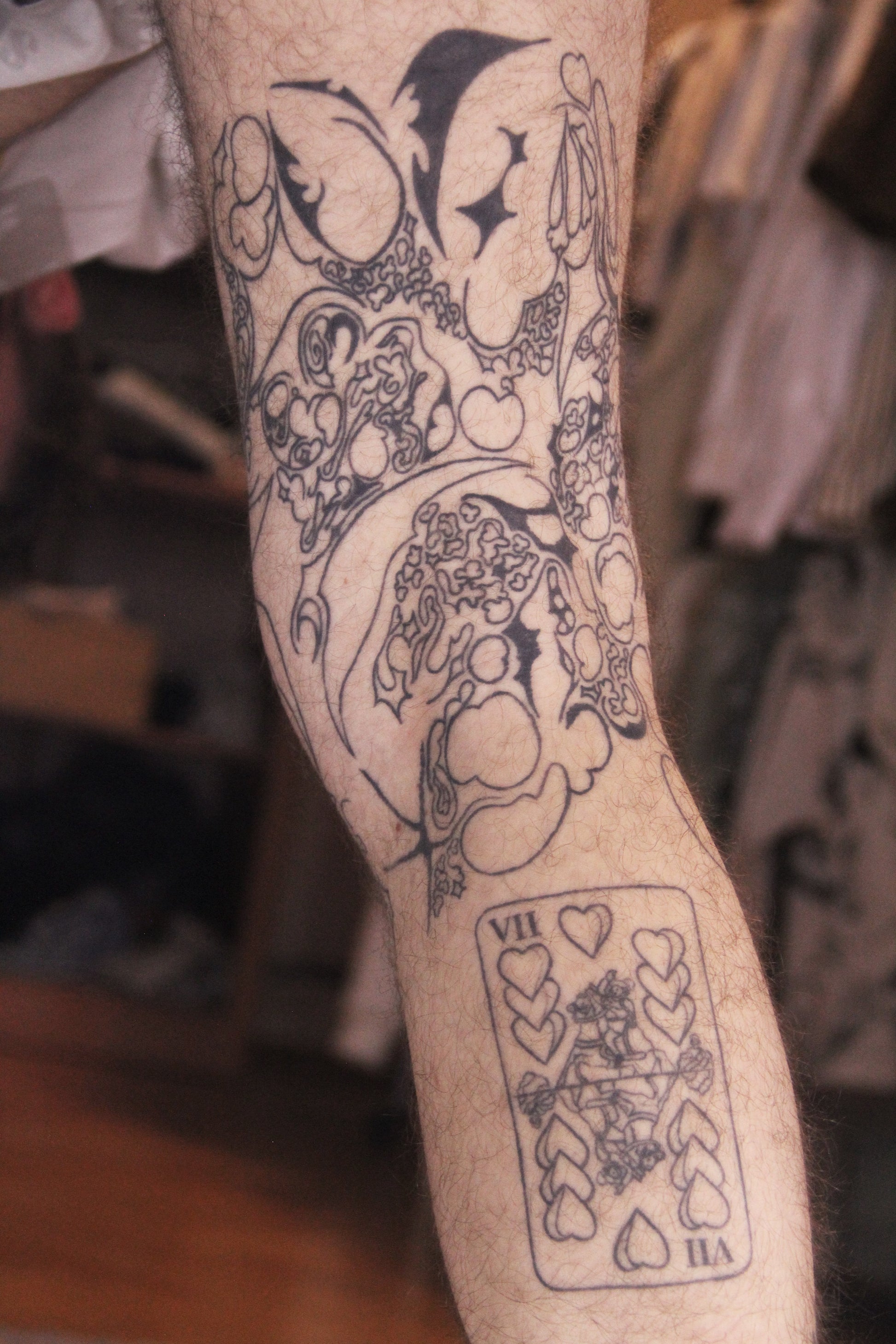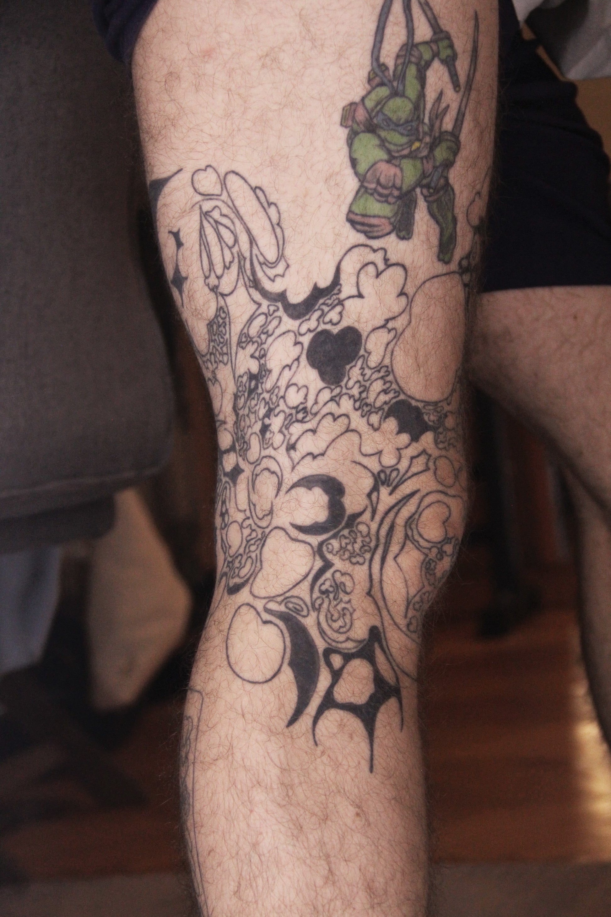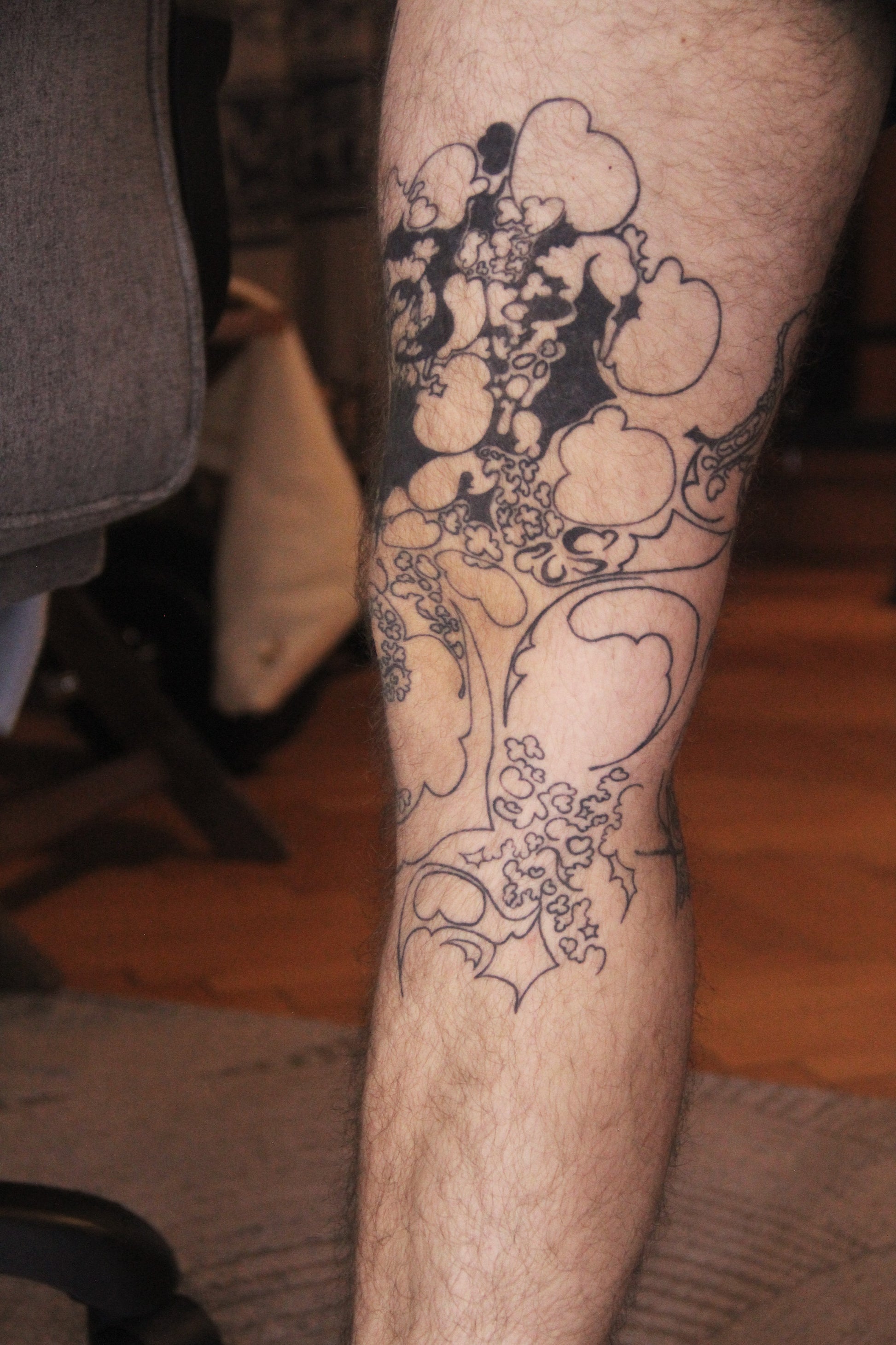 Môj charakteristický abstraktný motív vytetovaný na mojej nohe.