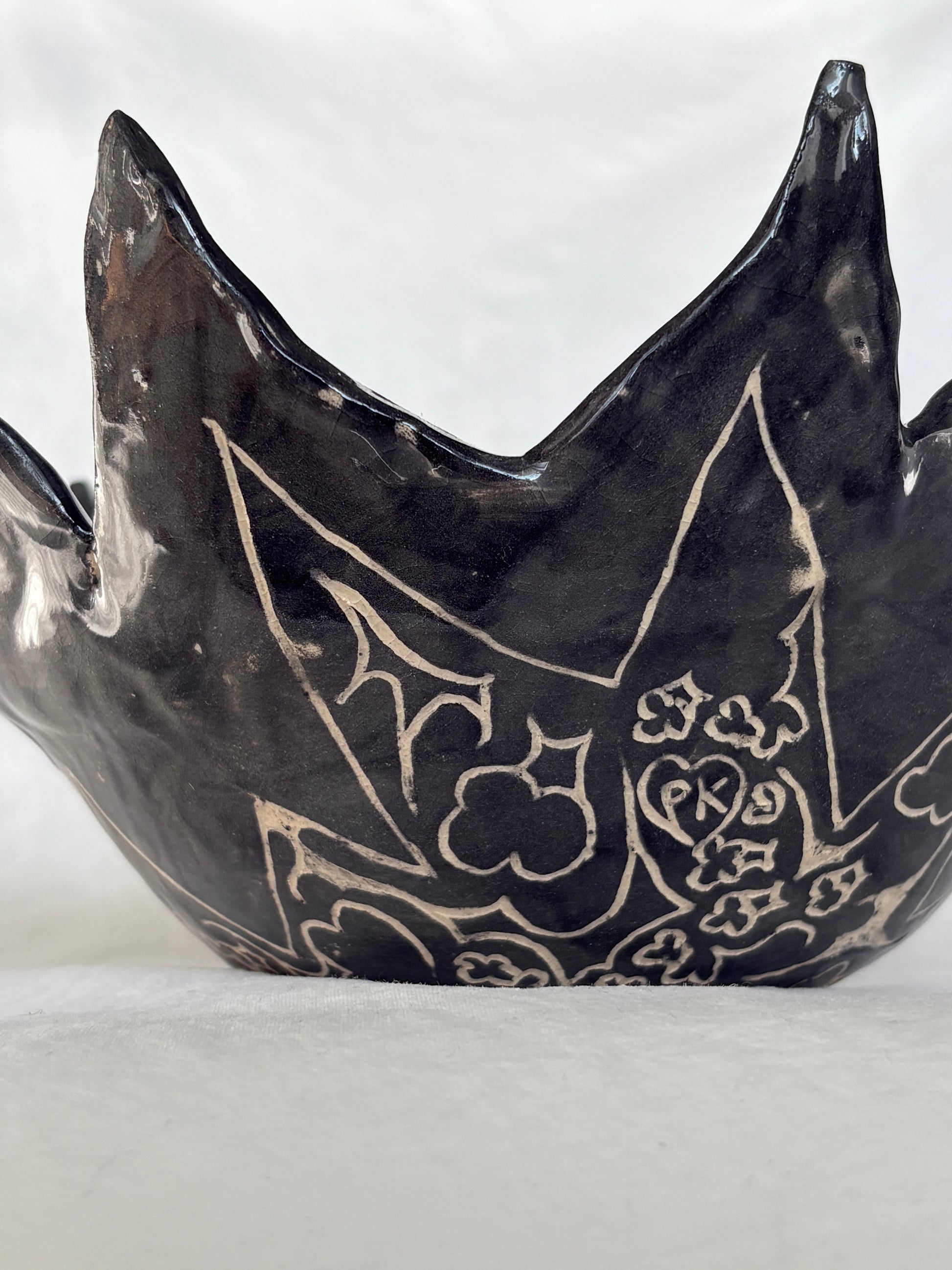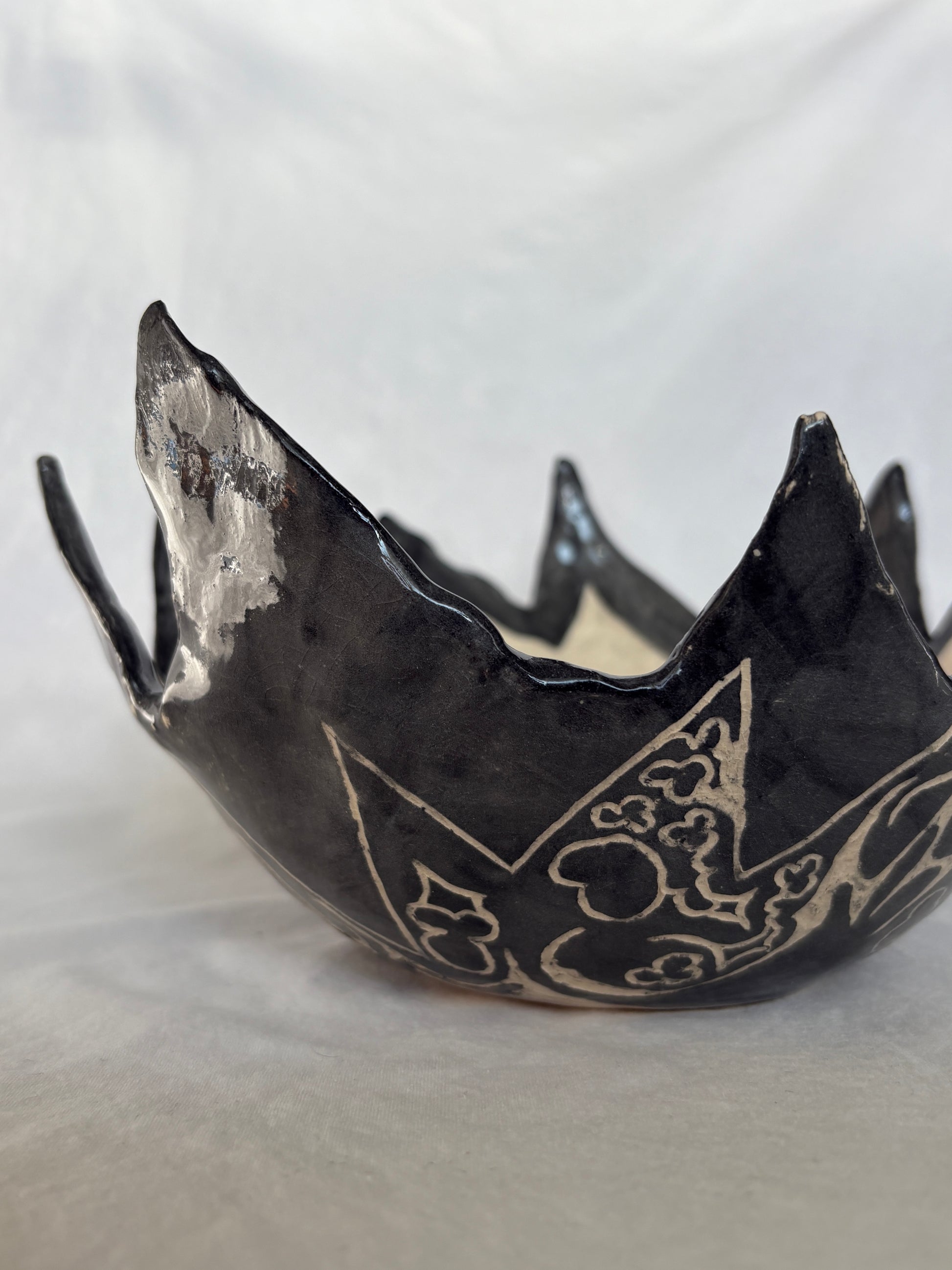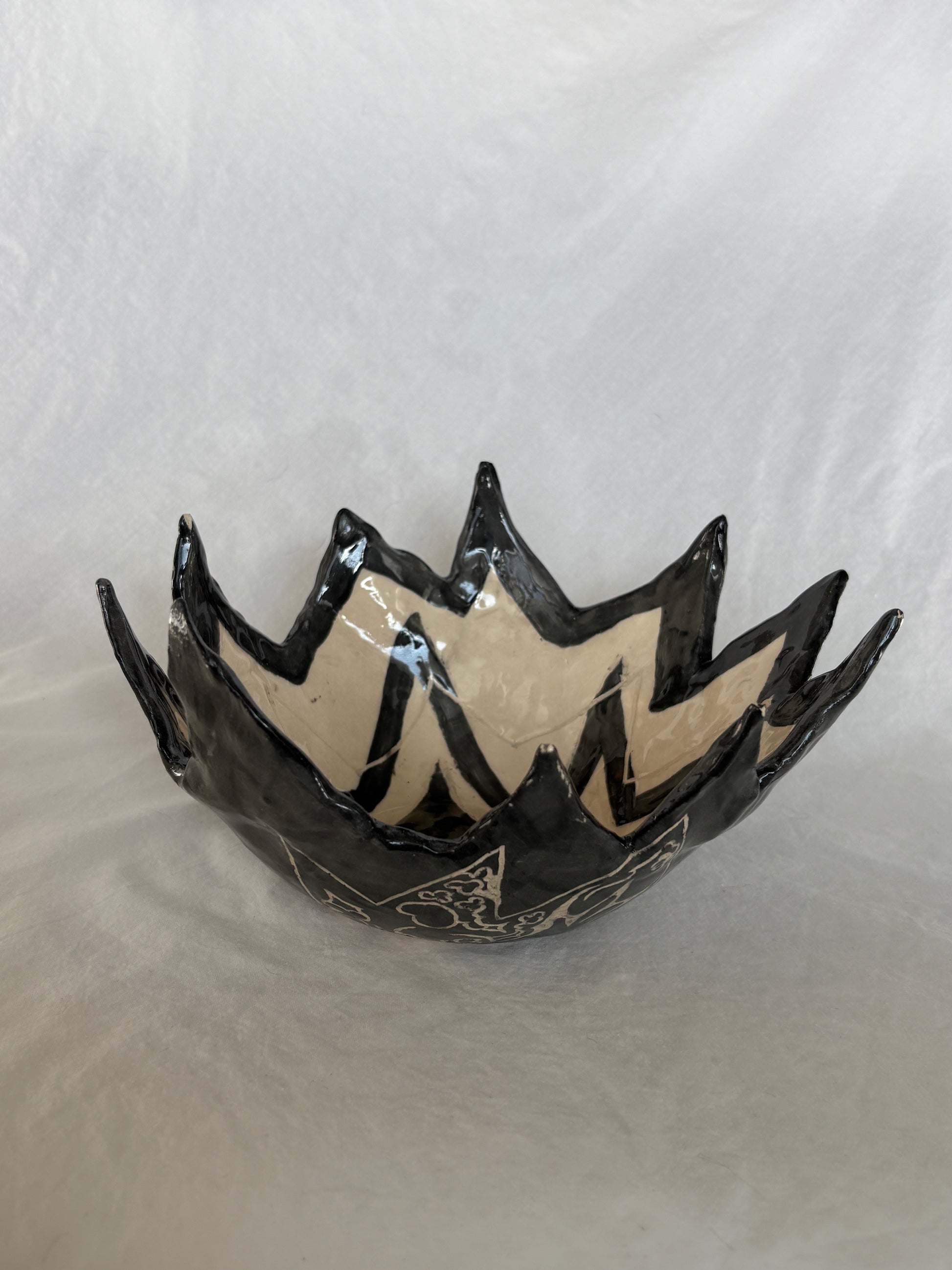 Čierna miska, keramika, hlinka, 20cm x 11cm.