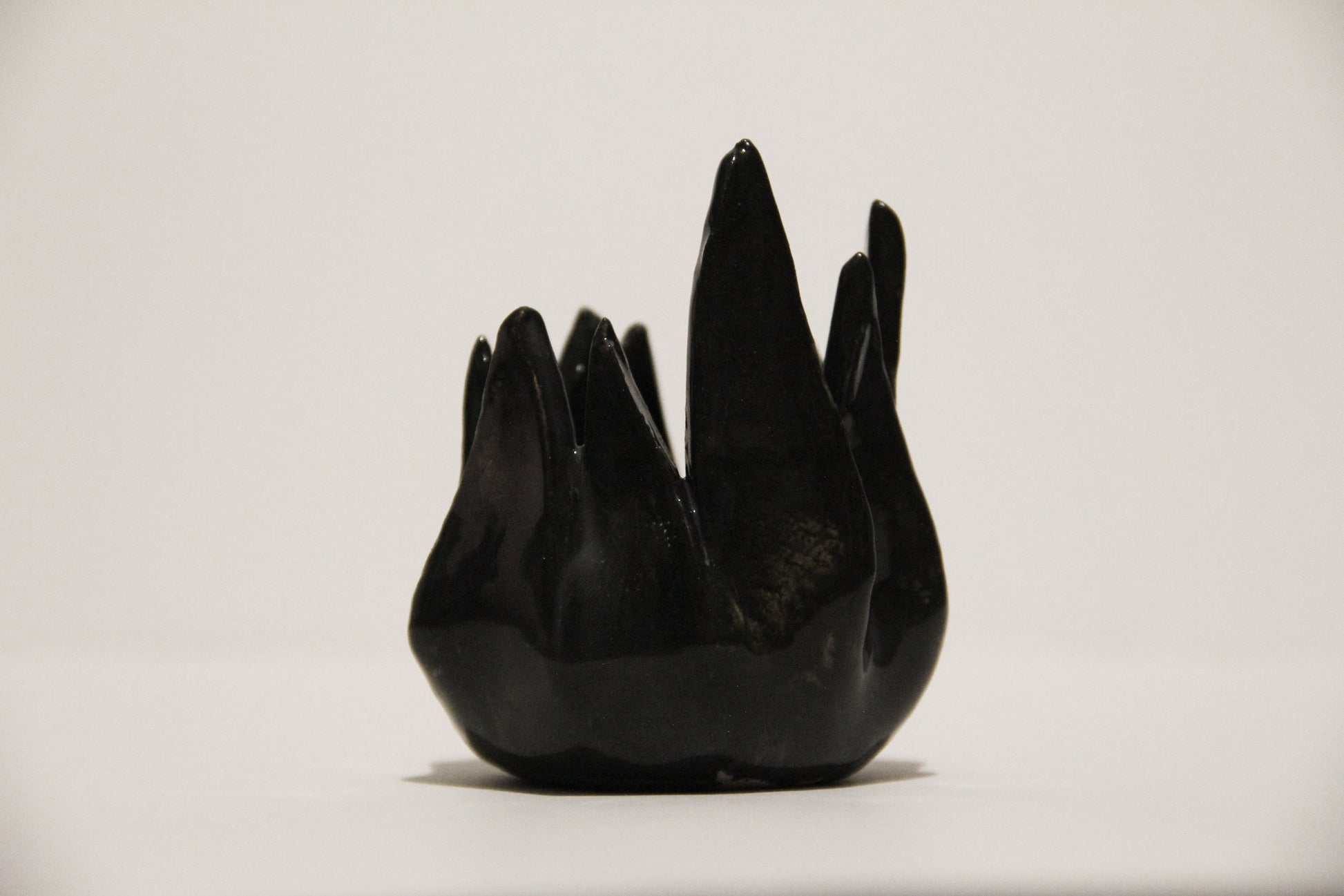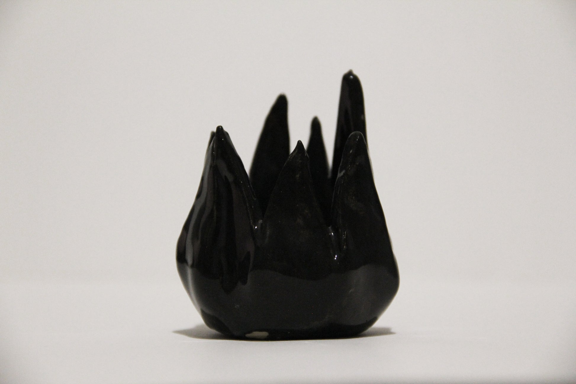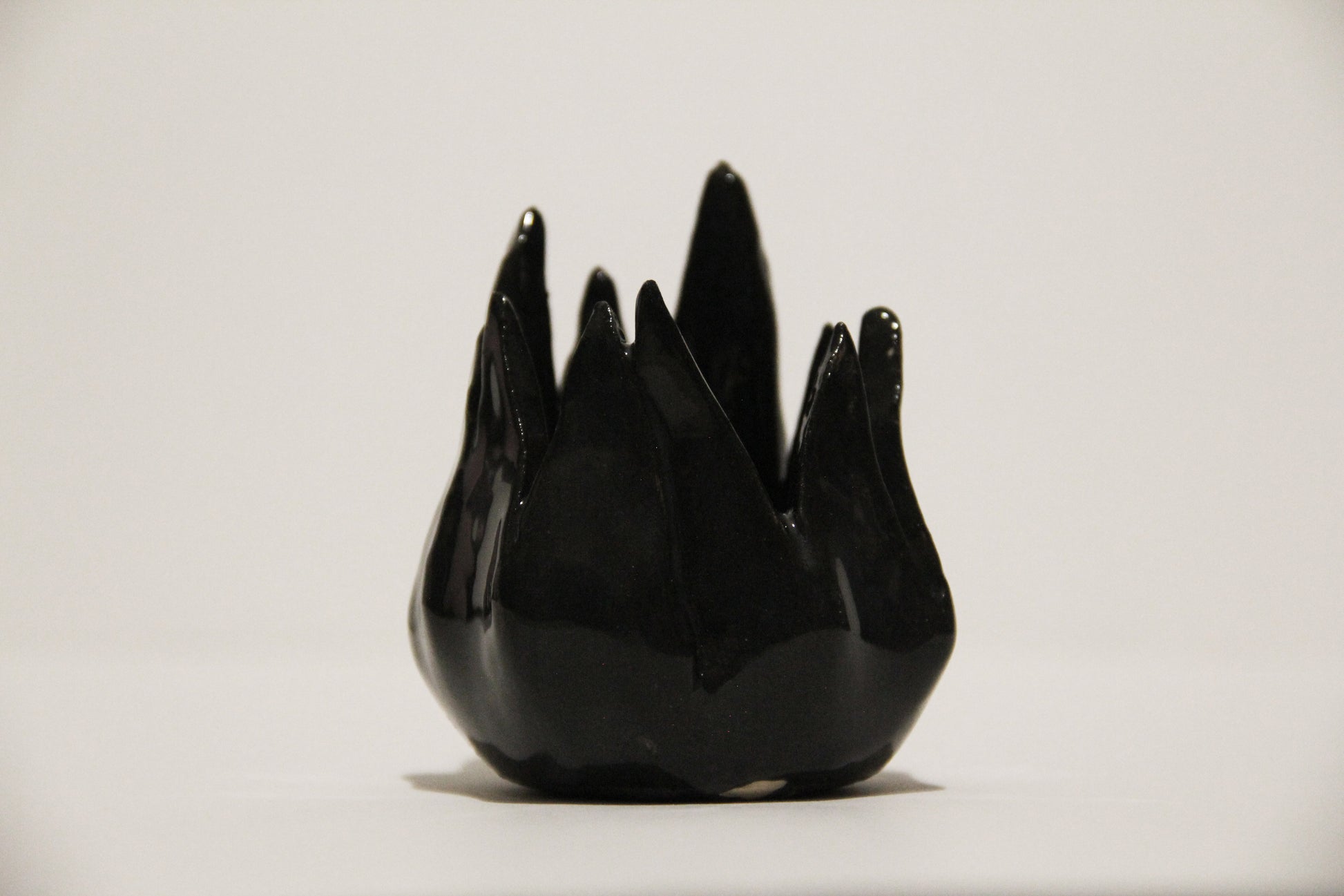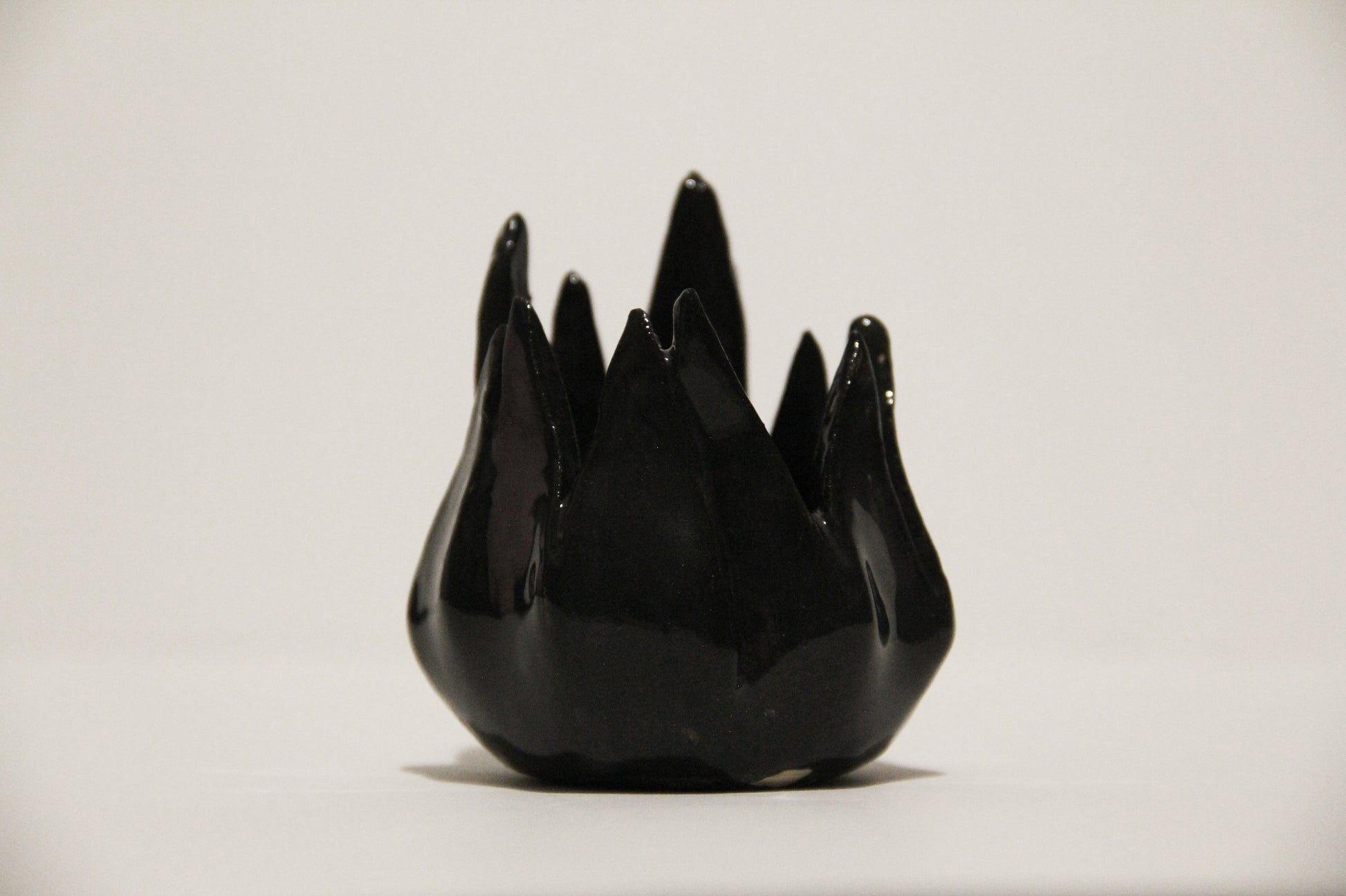 Ručne vyrobený čierny keramický svietnik. Keramika s hlinkou.