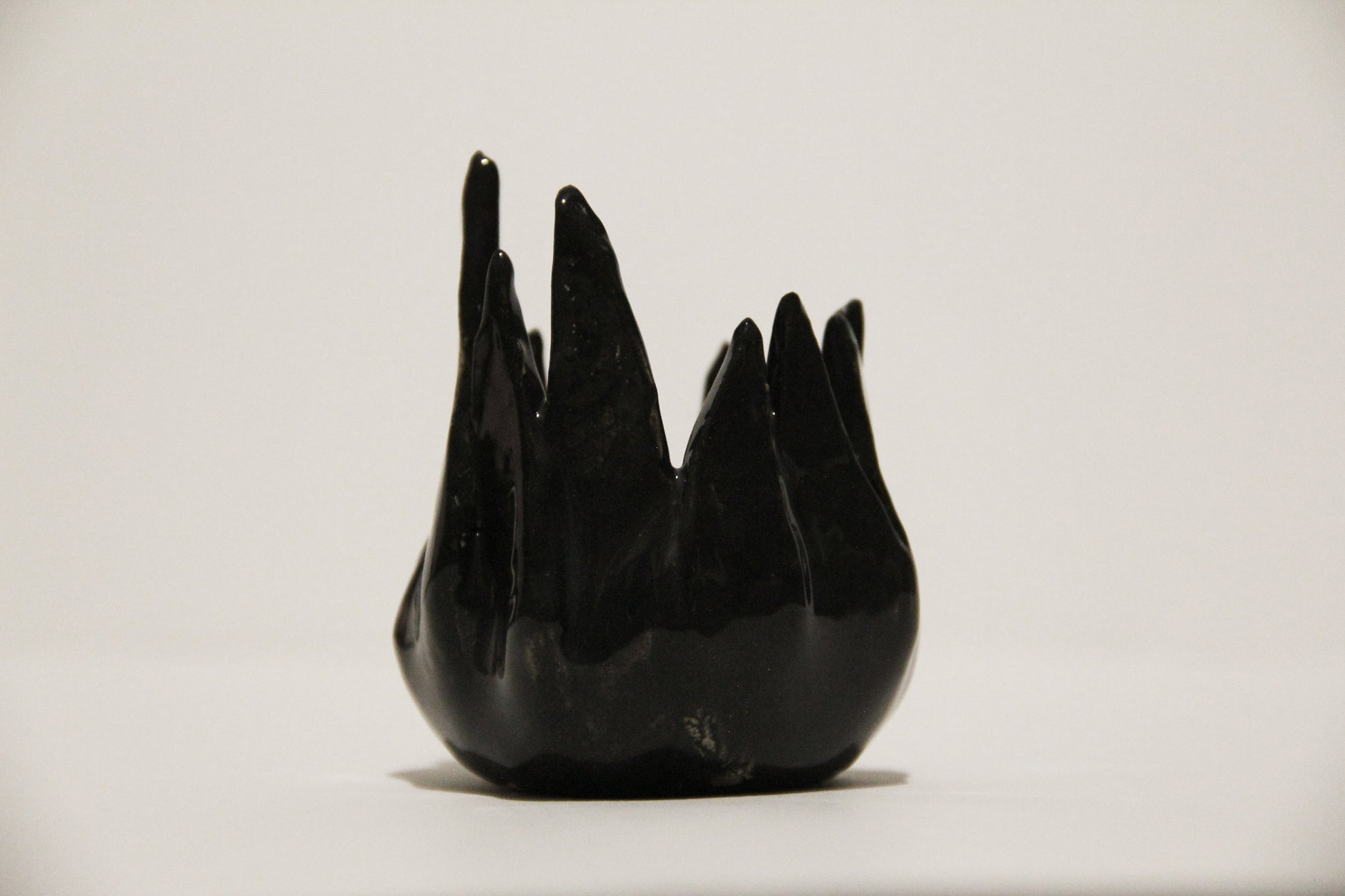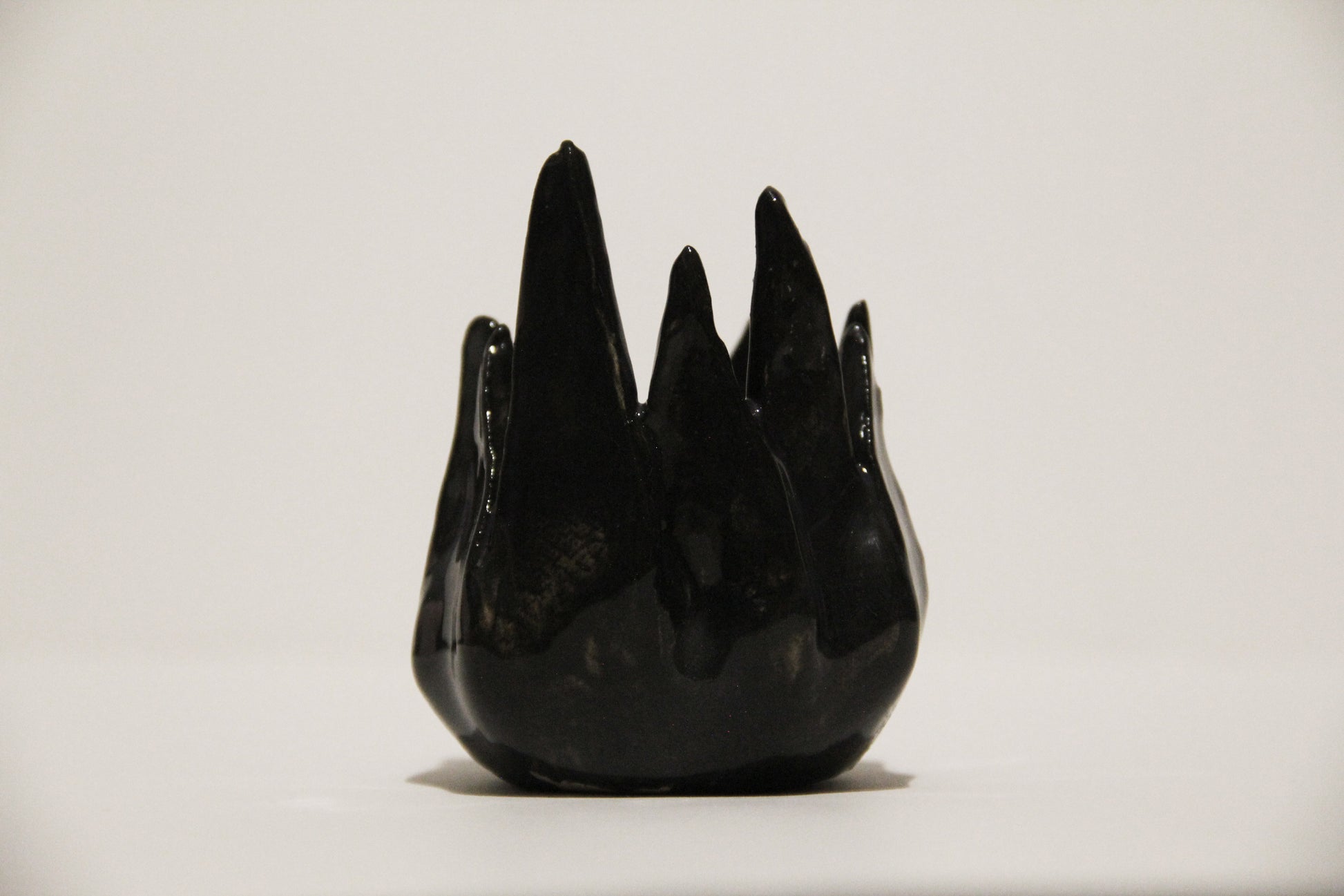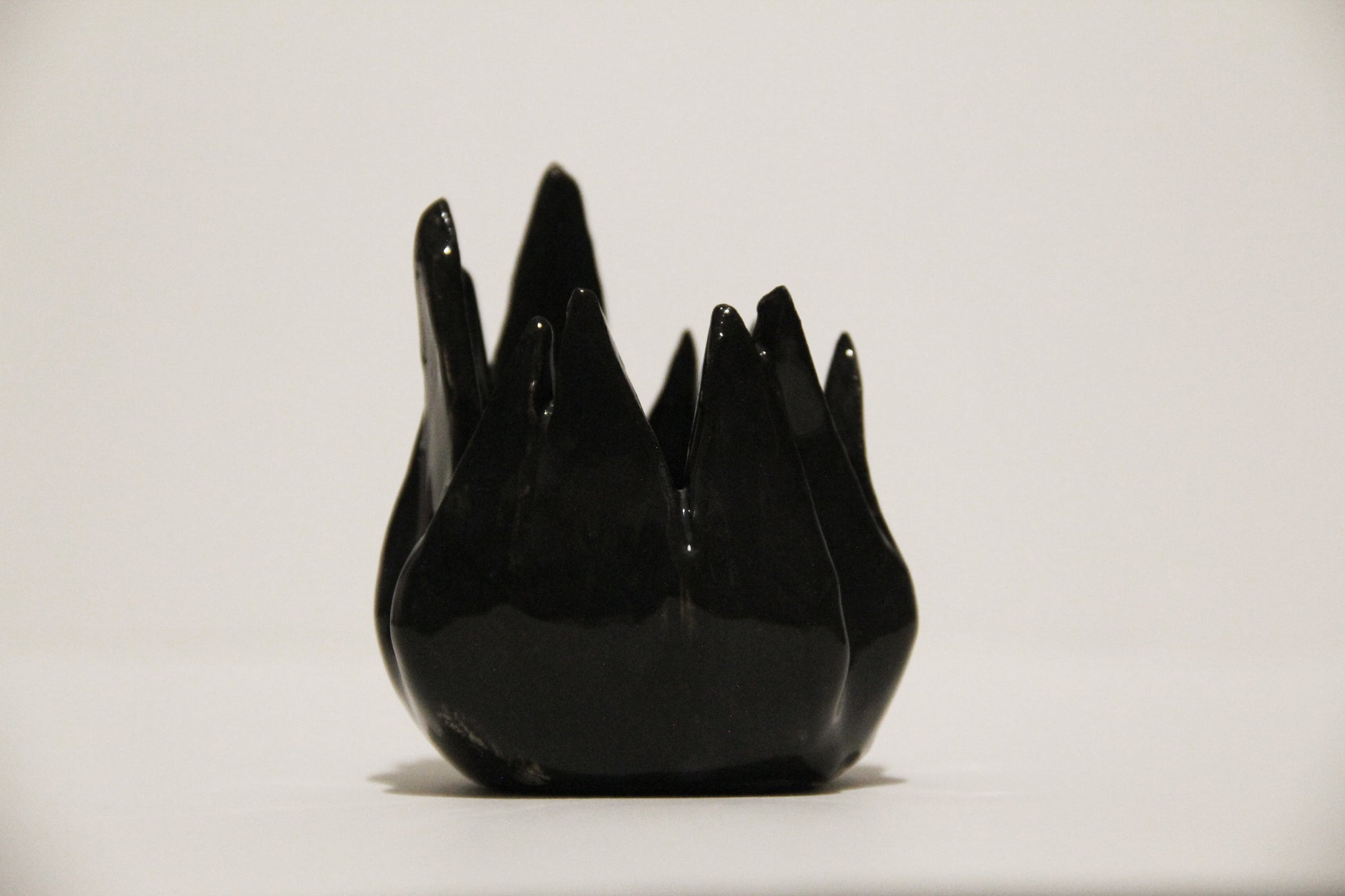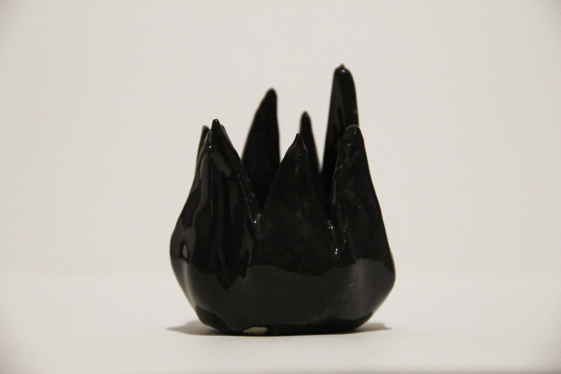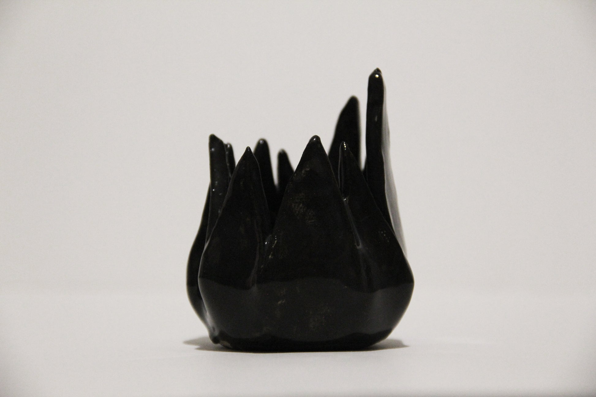 Ručne vyrobený čierny keramický svietnik. Keramika s hlinkou.