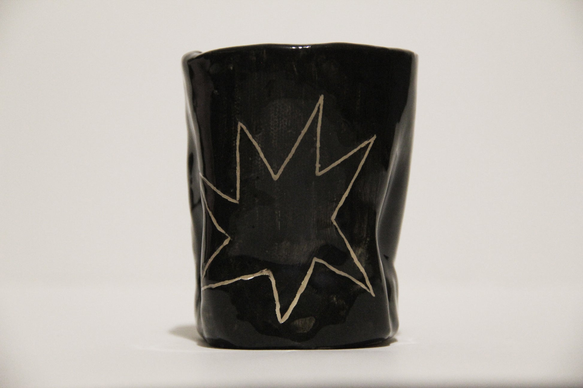 Čierny keramický hrnček s hviezdami, ideálny na kávu alebo čaj. Keramika s hlinkou.