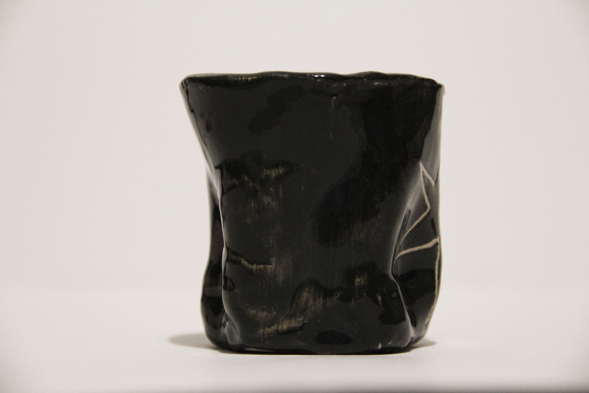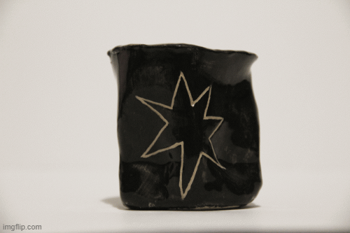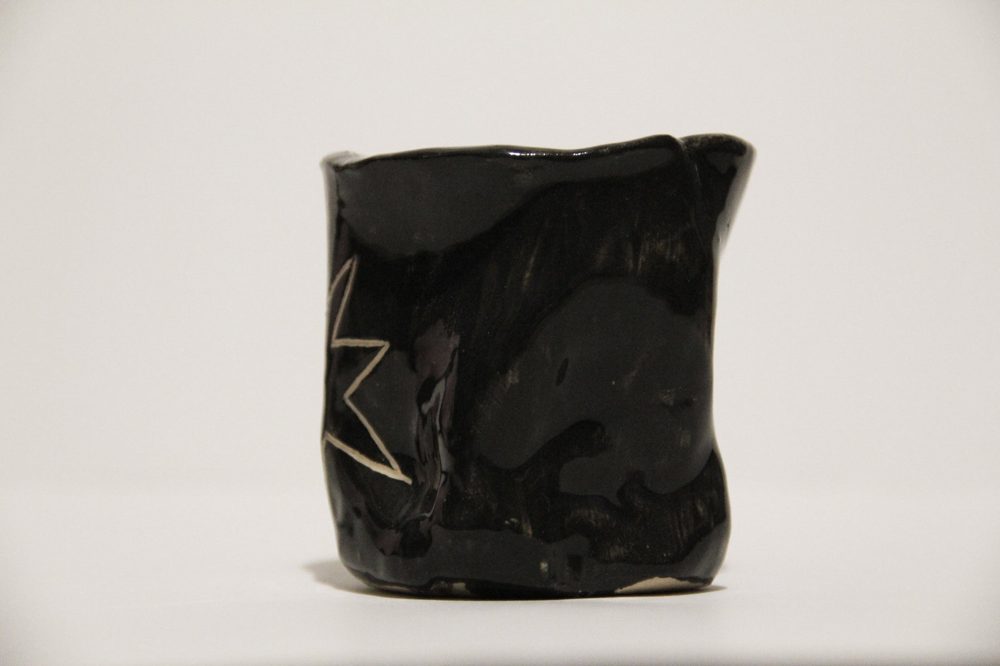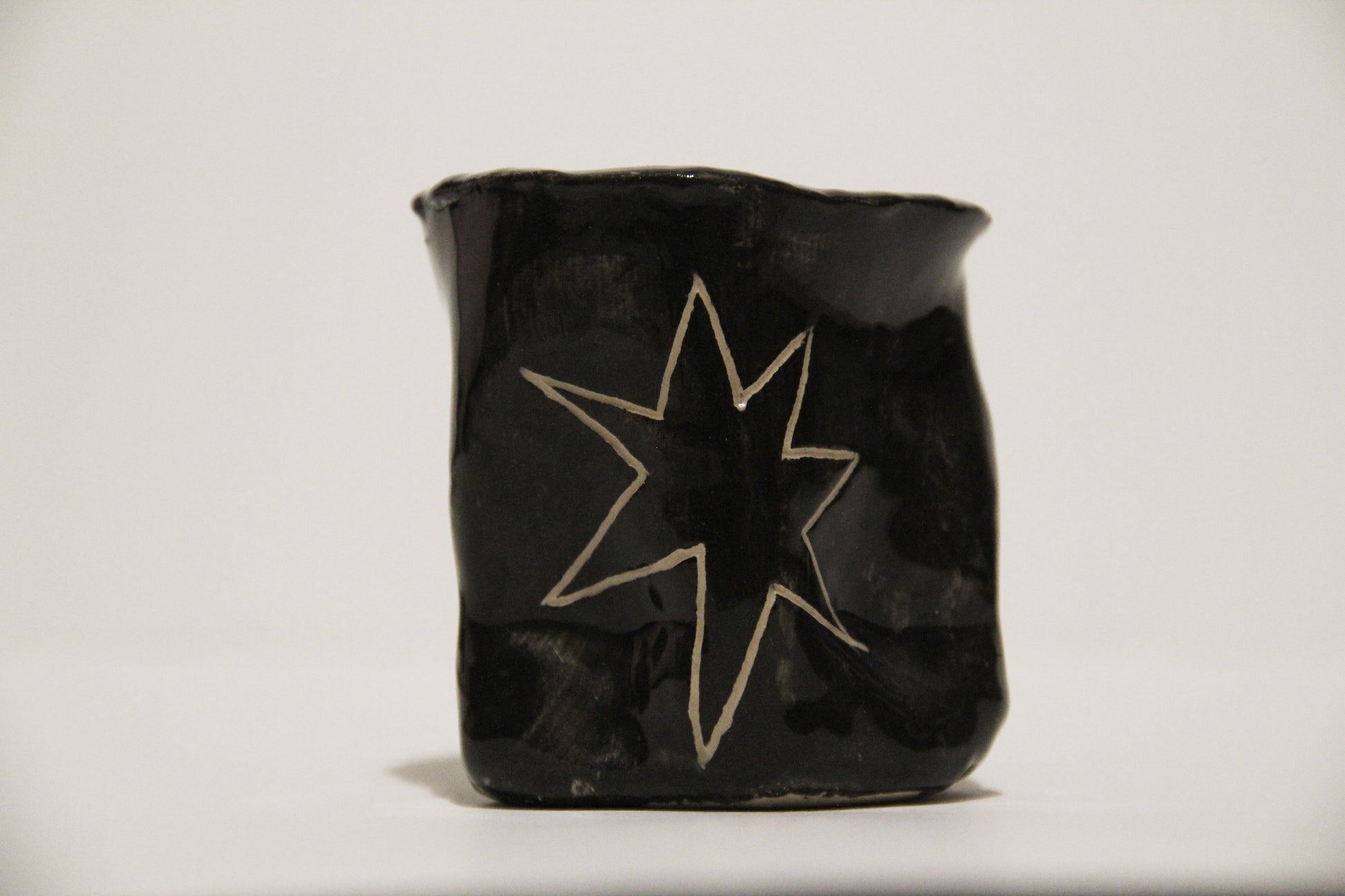 Čierny keramický hrnček s hviezdami, ideálny na kávu. Keramika s hlinkou.