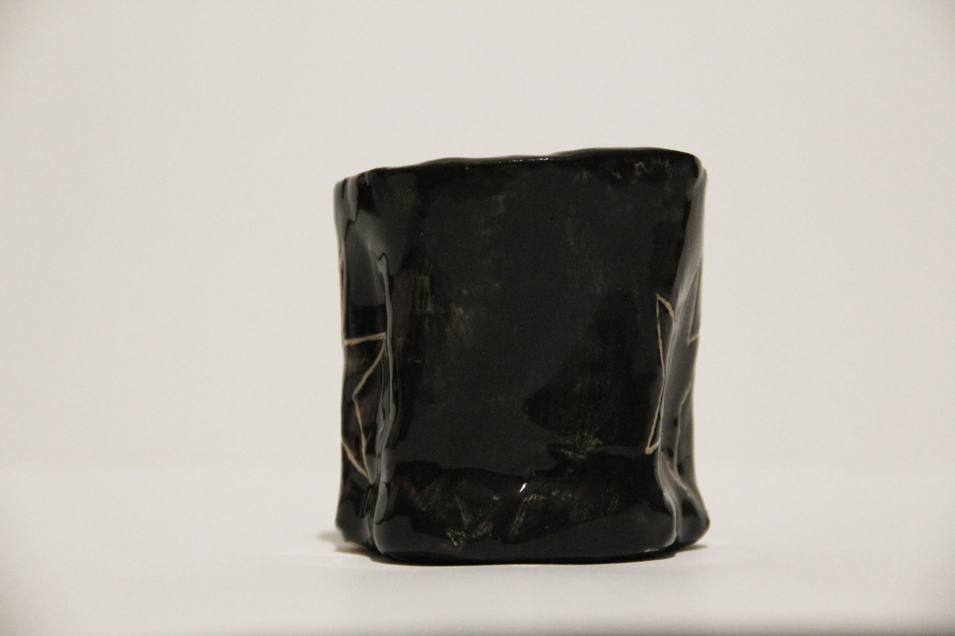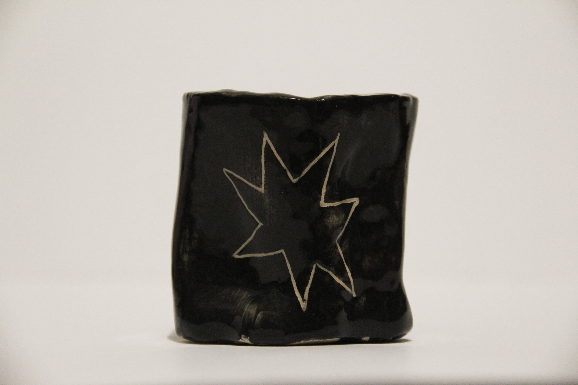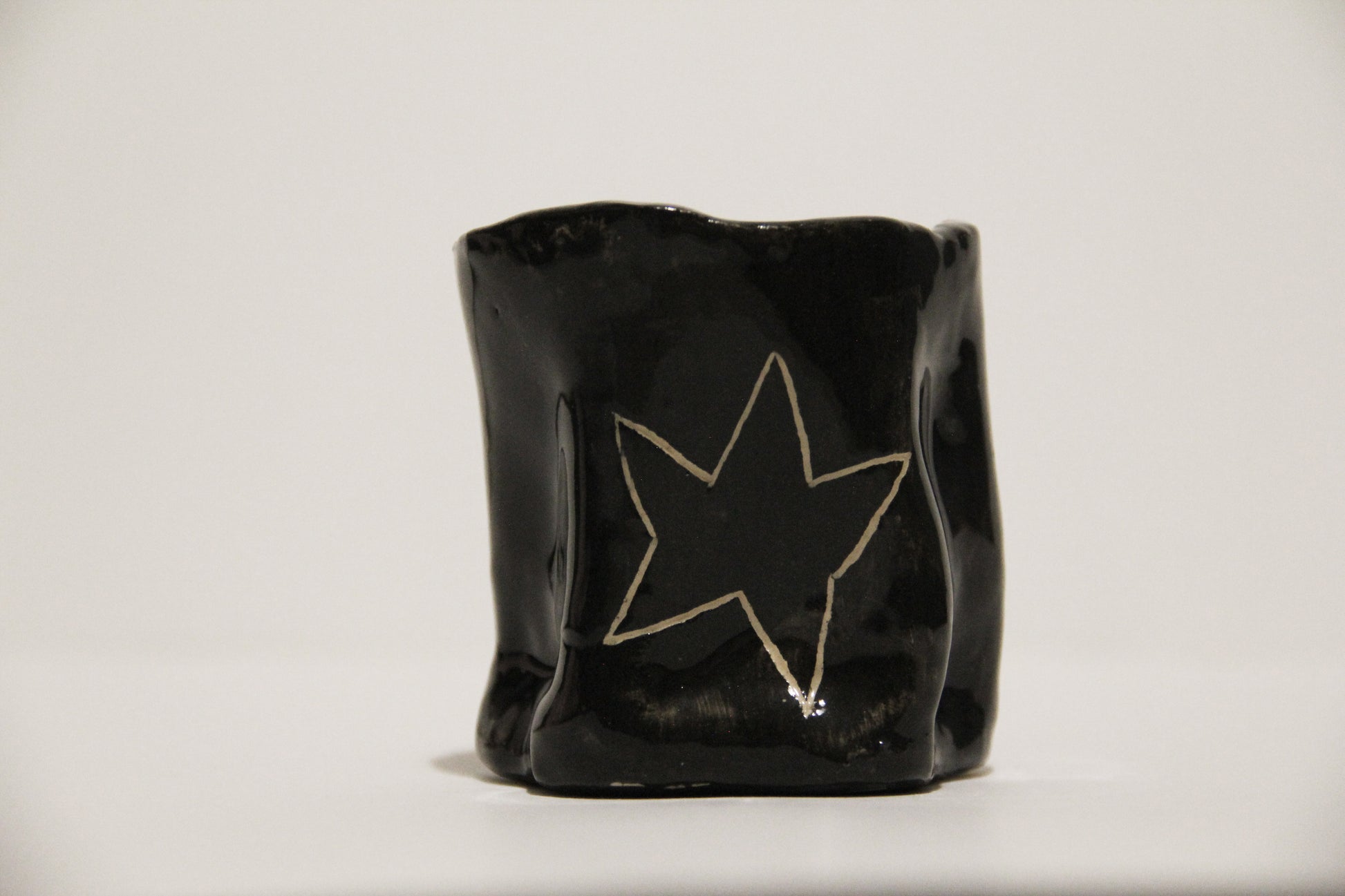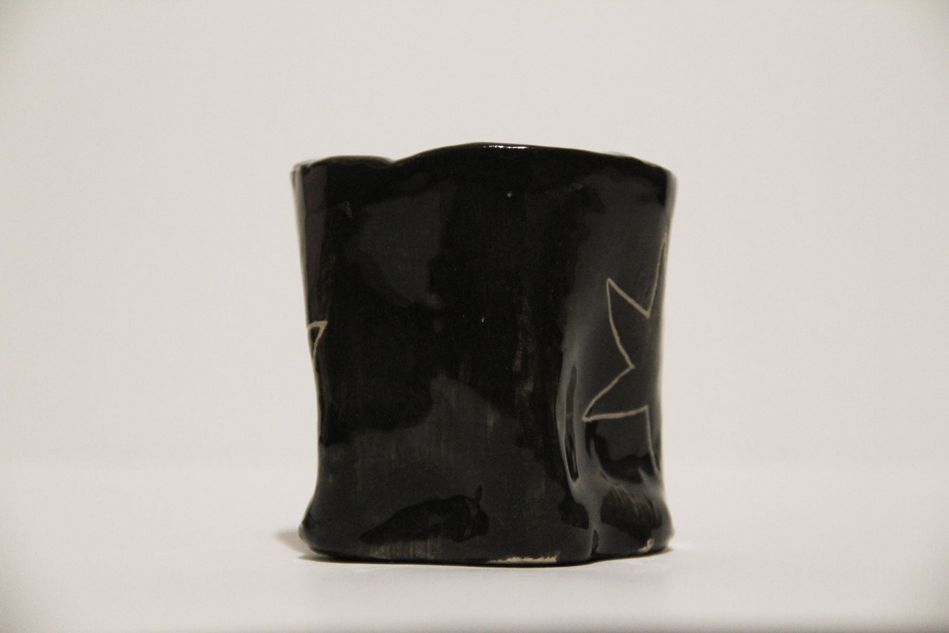 Čierny keramický hrnček s hviezdami, ideálny na kávu. Keramika s hlinkou.