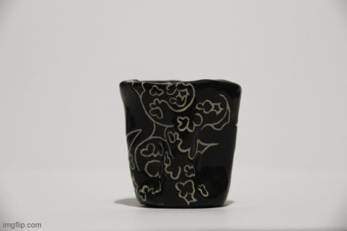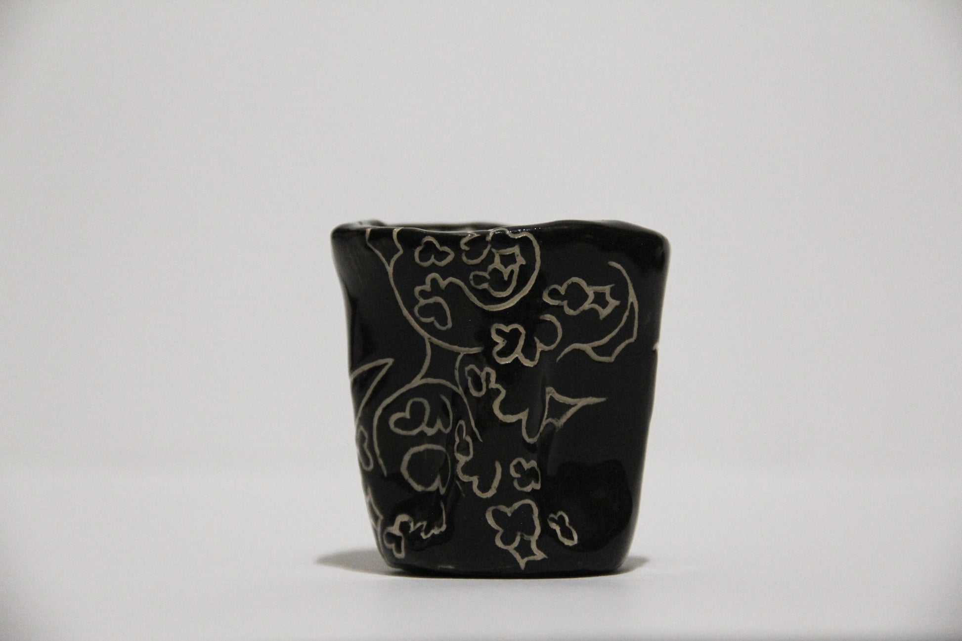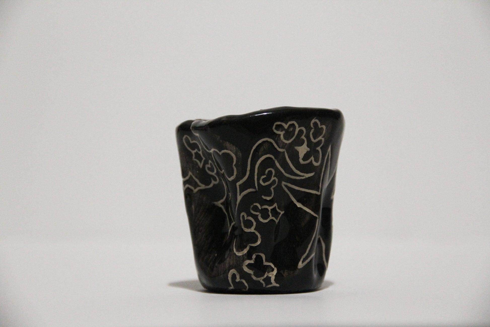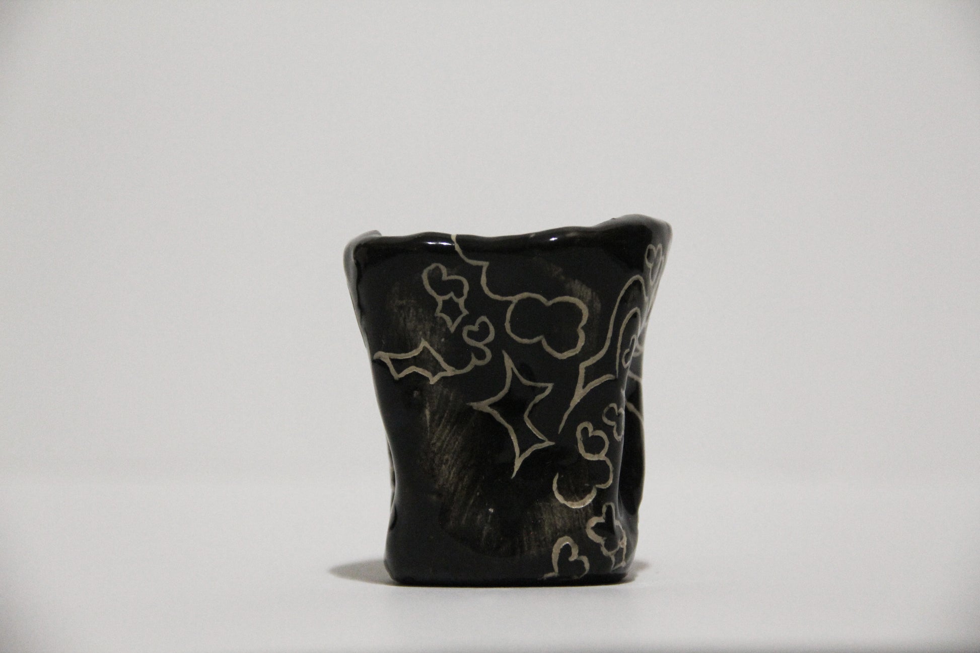Čierny keramický hrnček s mojím charakteristickým abstraktným vzorom, ideálny na malú kávu alebo aj ako štamprlík. Keramika s hlinkou.