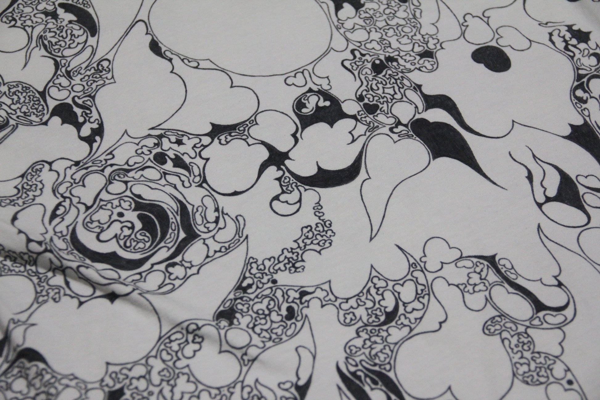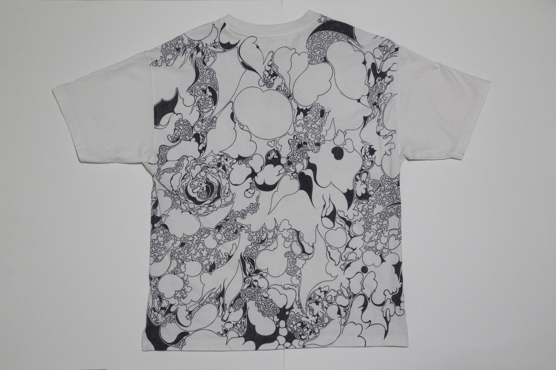 Jedinečné tričko premenené na nositeľné umenie prostredníctvom kontinuálneho, ručne kresleného abstraktného motívu. Každá čiara a tvar boli nakreslené starostlivo, vďaka čomu tričko pôsobí ako profesionálna potlač, no zachováva textúru a autenticitu ručnej práce. Spojenie umenia a módy—určené na nosenie, dotyk a zážitok.