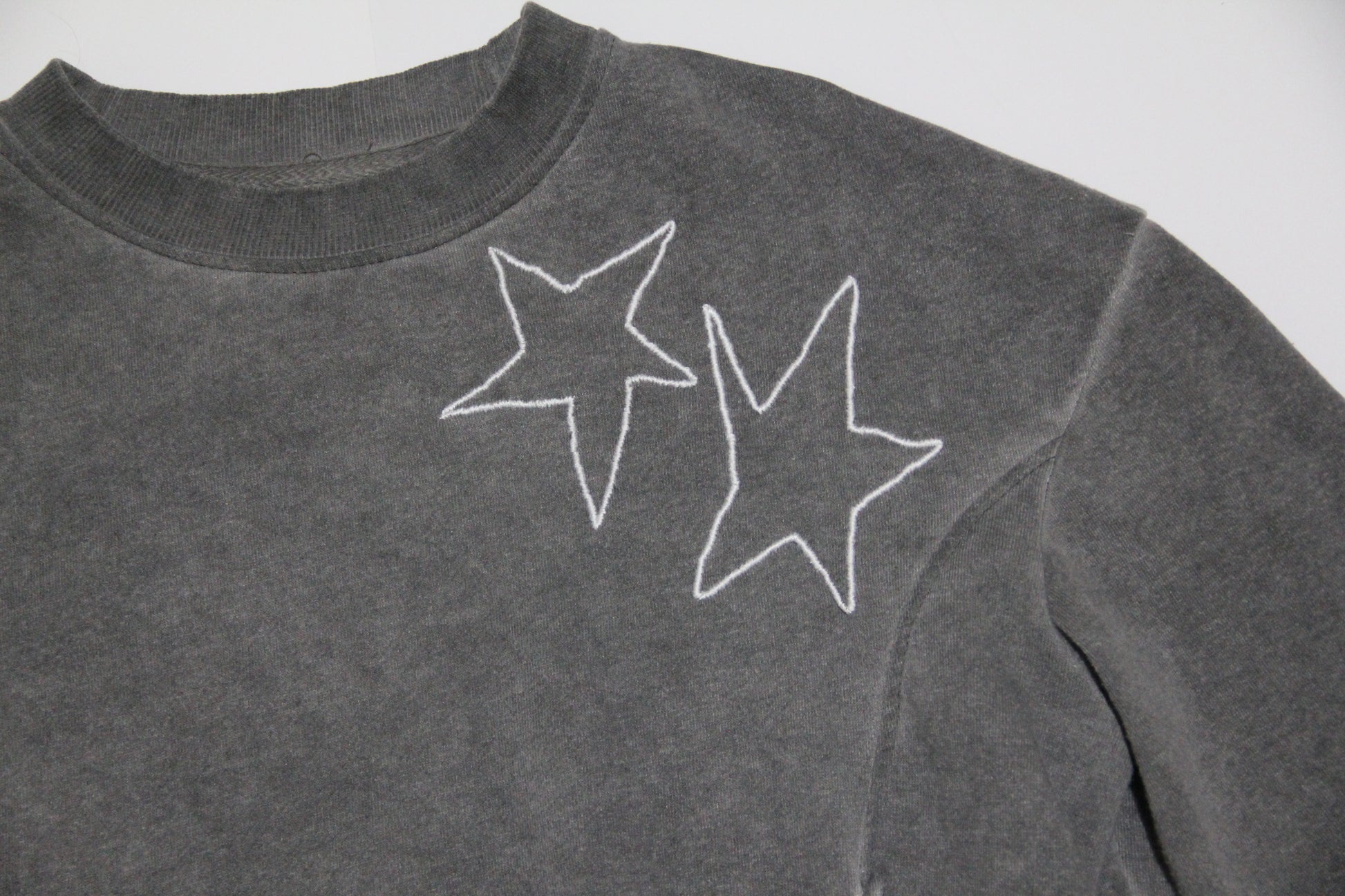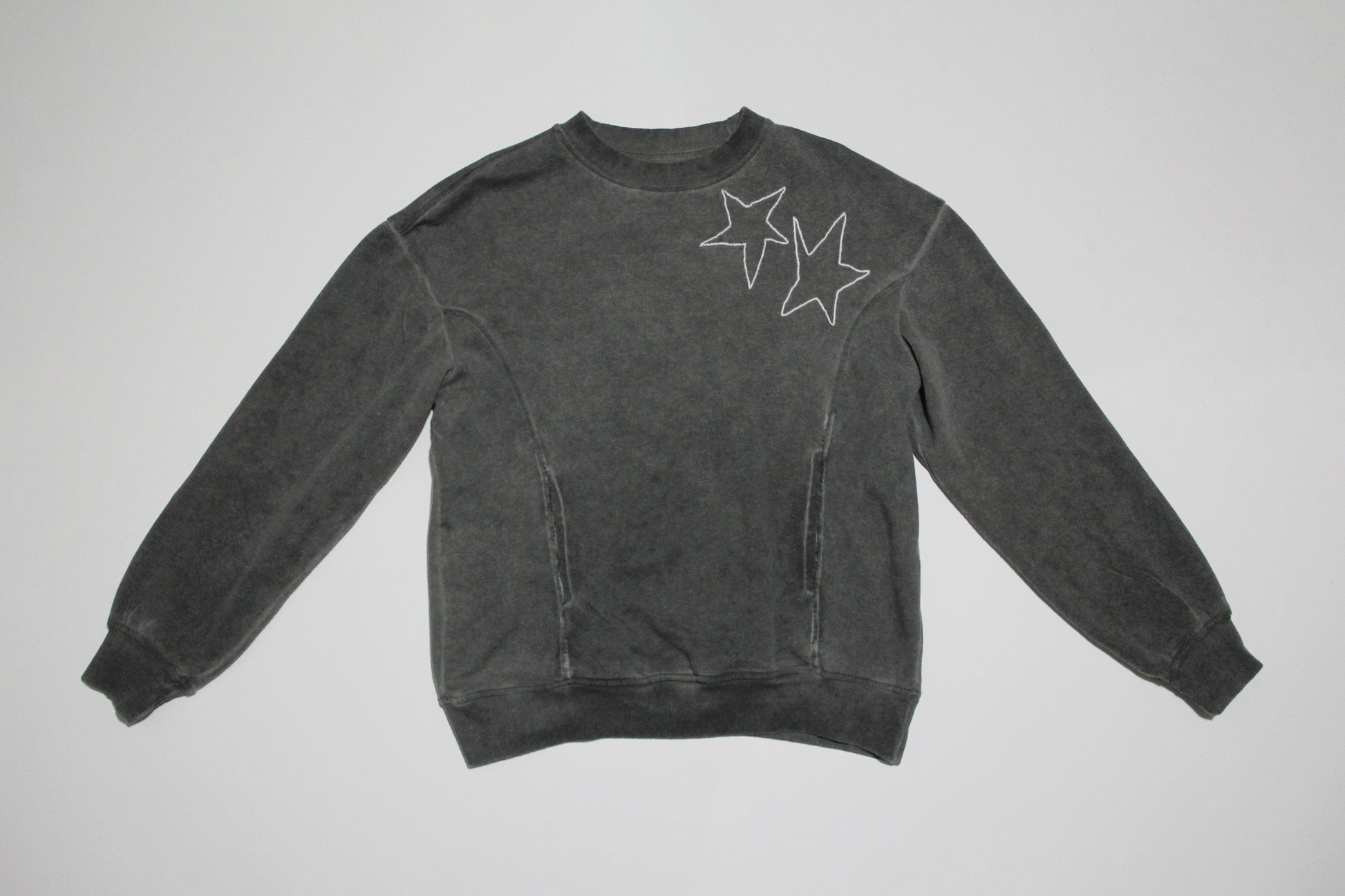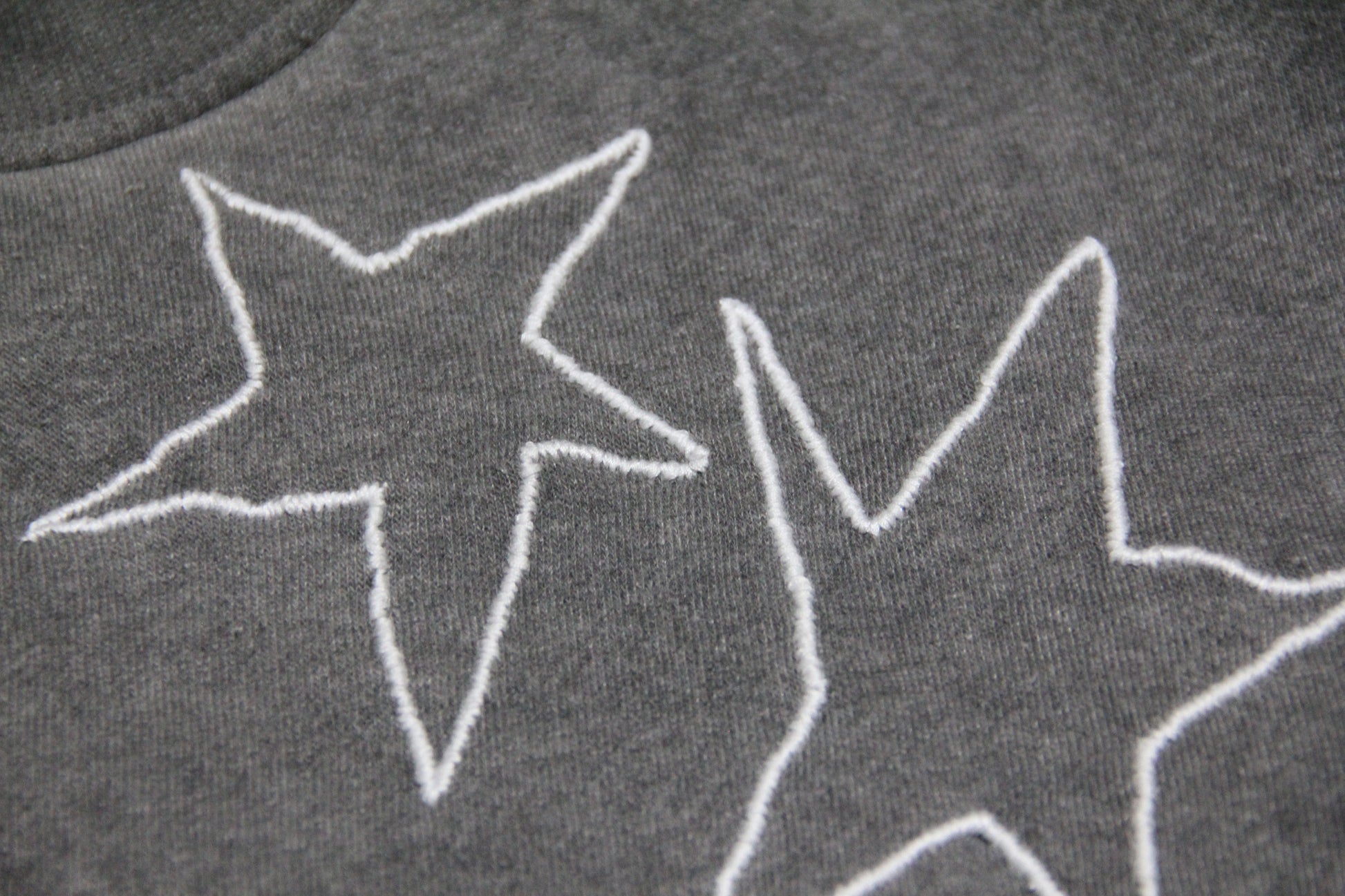 Experiment s niťou a trpezlivosťou. Dve malé hviezdy ručne vyšité obyčajnou niťou, nedokonalé a plné lásky. Malý tvorivý akt premenený na niečo, čo môžeš nosiť.