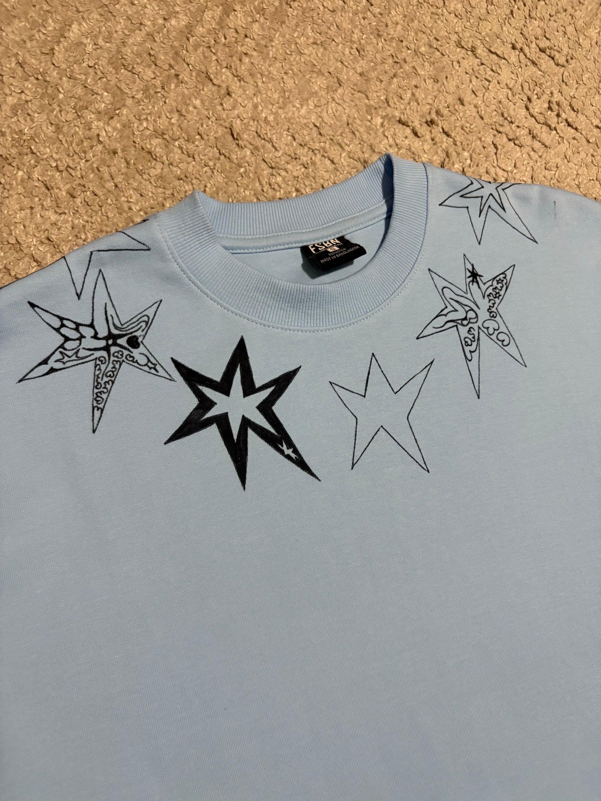 Jedinečné tričko s mojimi charakteristickými abstraktnými hviezdami.