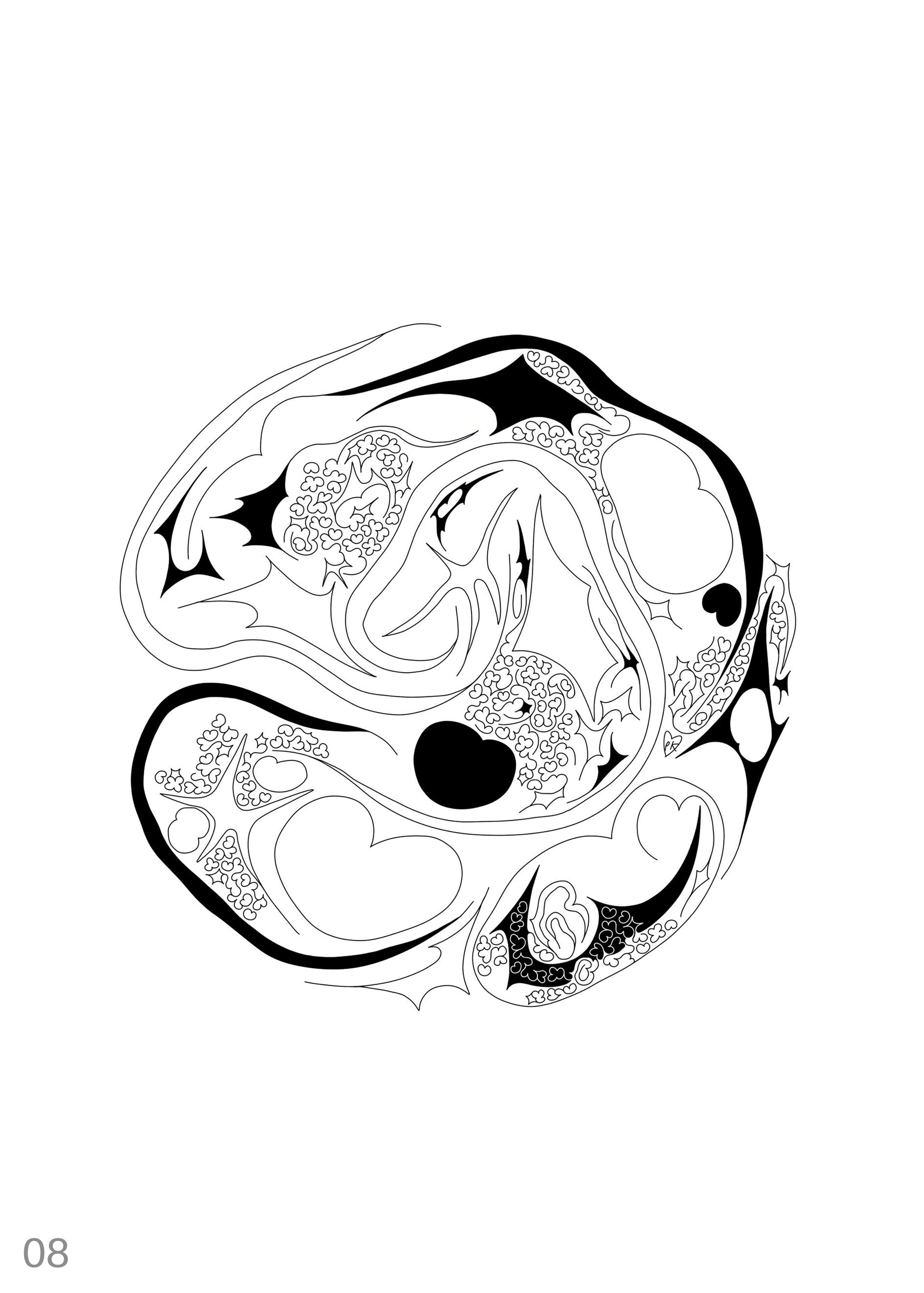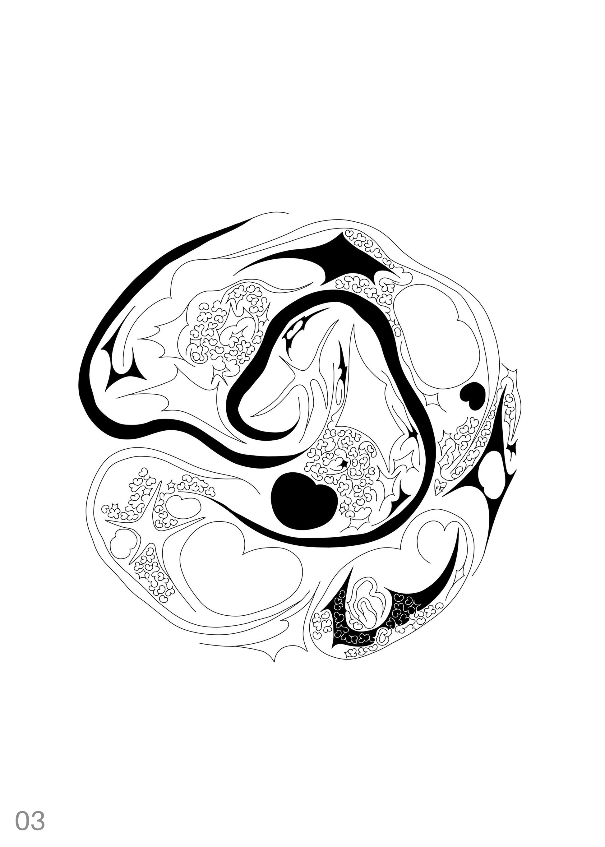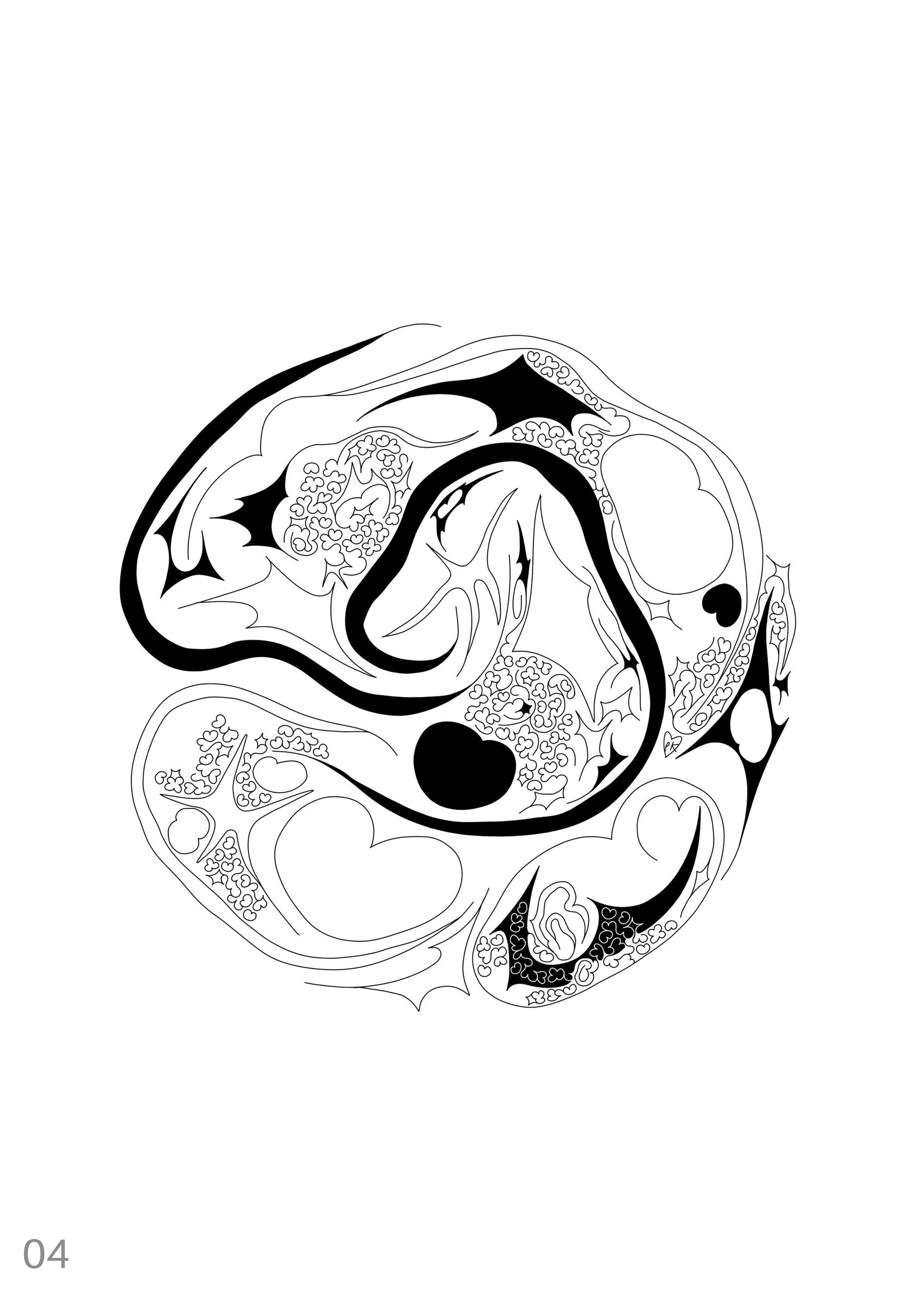 Abstraktný kruh, digitálna kresba, 50cm x 70cm.