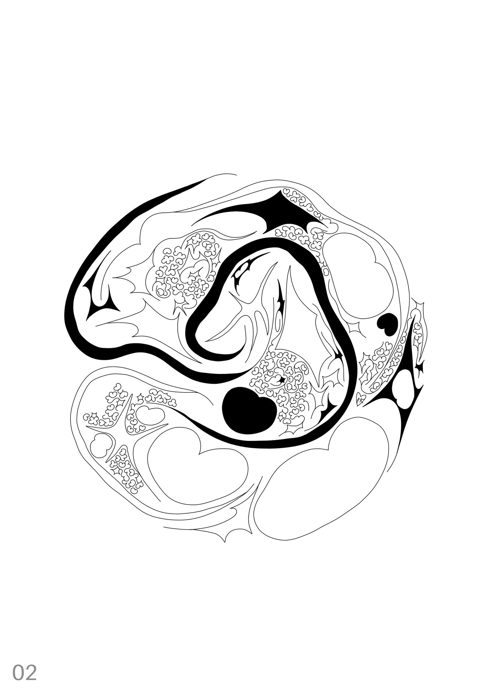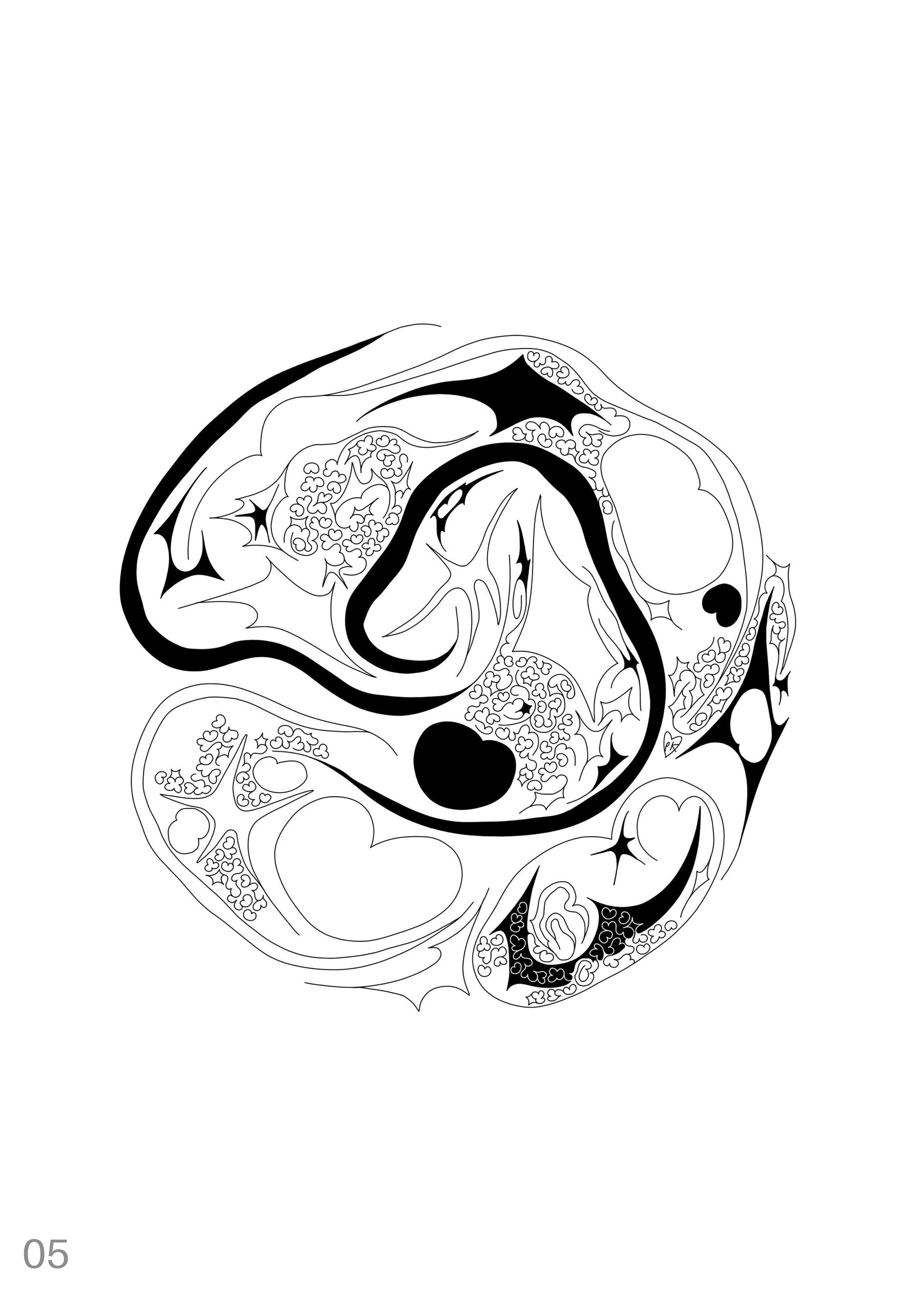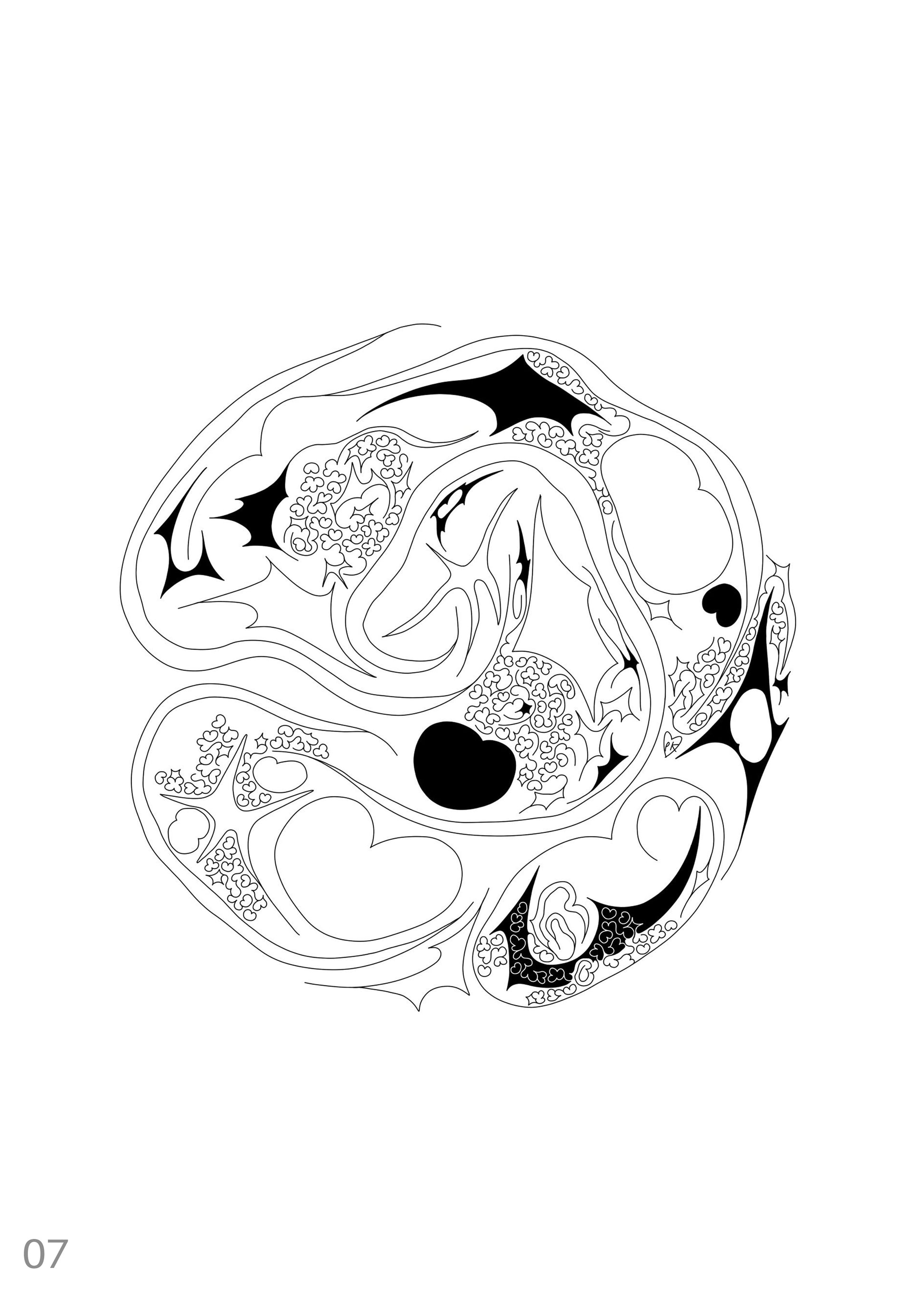 Abstraktný kruh, digitálna kresba, 50cm x 70cm.