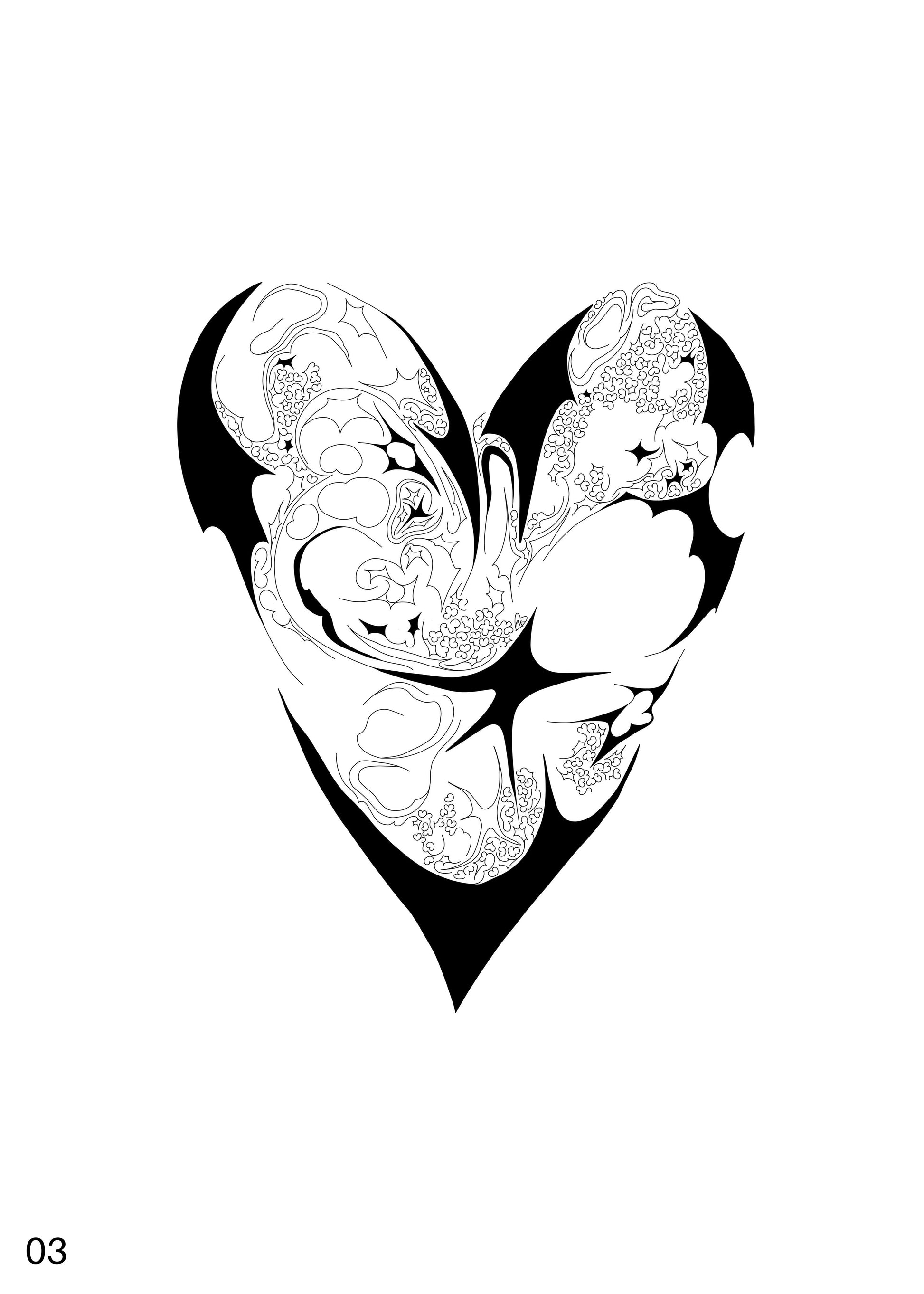 Abstraktné srdce, digitálna kresba, 50cm x 70cm.