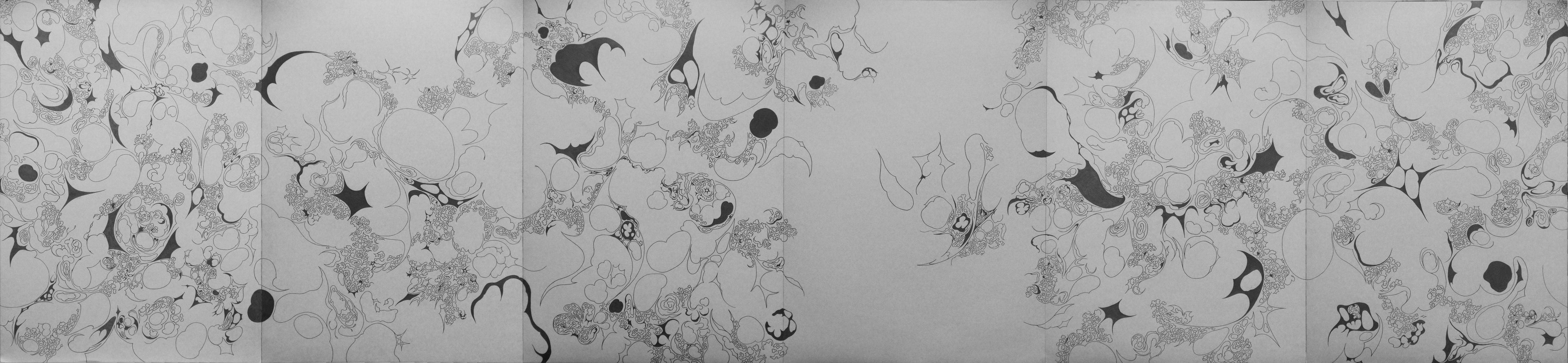 Séria Circle 1, pozostávajúca zo šiestich jedinečných diel, každé 50cm x 70 cm, skúma rytmus kontinuity — kde jeden moment končí, druhý začína. Každá kresba plynulo nadväzuje na ďalšiu, tvoriac vizuálnu slučku bez jasného začiatku či konca. Kreslené ceruzkou. Diela sa sústreďujú na detailnú hru tvarov a línií, zachytavajúc neustálu transformáciu foriem.