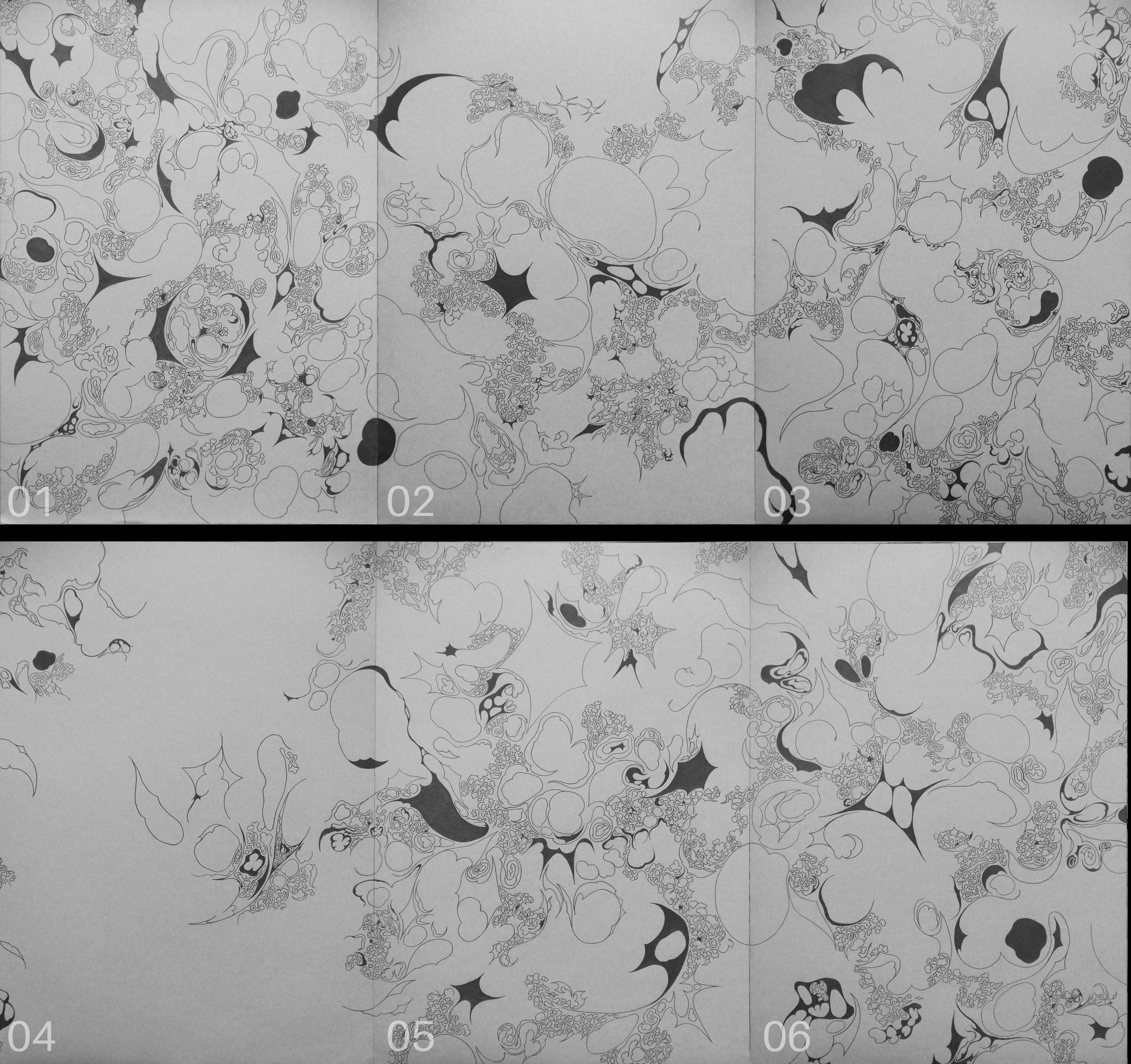 Minimalistický, čiernobiely prístup zdôrazňuje gesto, opakovanie a precíznu prácu s líniami, odhaľujúc meditatívny proces za každou stopou. Séria ako celok sa stáva tichou reflexiou cyklov — myšlienok, emócií a samotného aktu tvorby.