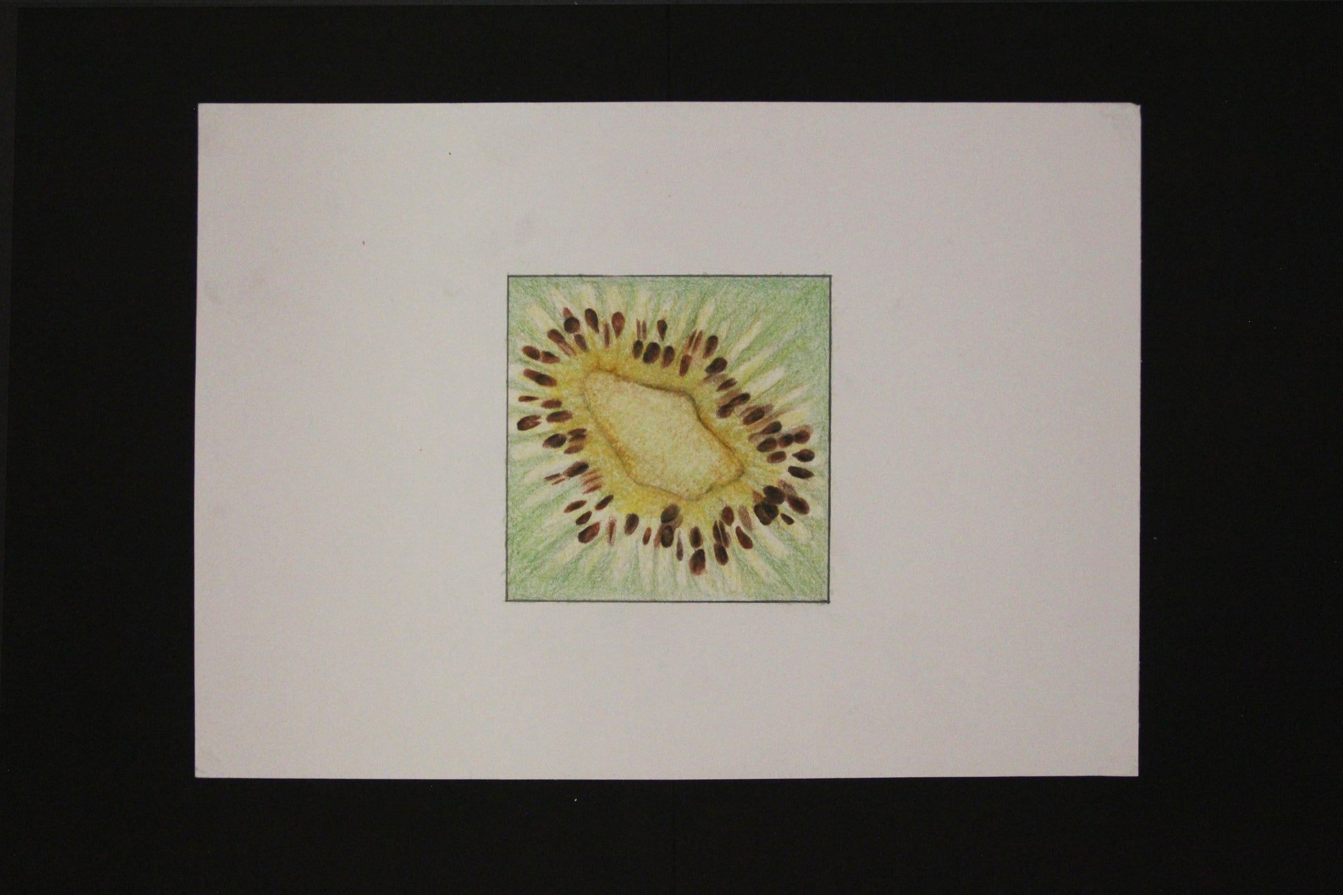 Detail kiwi, farebné ceruzky na papieri, A4.