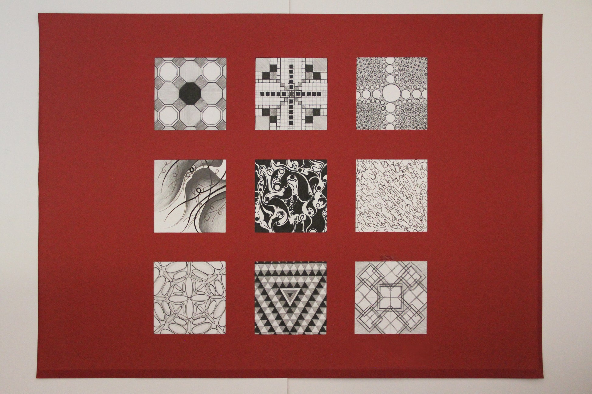 Kompozícia deviatich 10cm x 10cm štvorcov, v ktorých skúmam geometriu rôznymi spôsobmi—kruhy, trojuholníky, štvorce, línie a abstraktné usporiadania. Dielo sa zaoberá rytmom, rovnováhou a napätím medzi presnosťou a spontánnosťou, premieňajúc jednoduché tvary na tichý vizuálny dialóg.