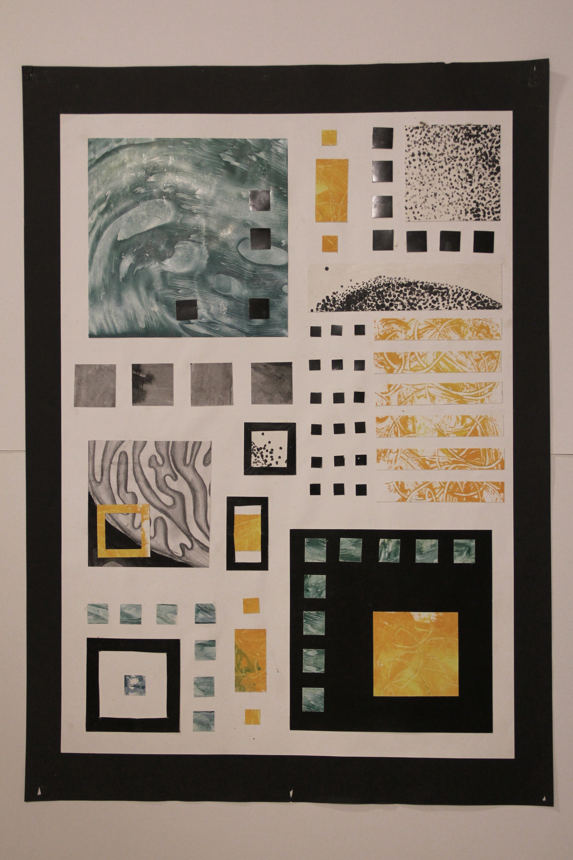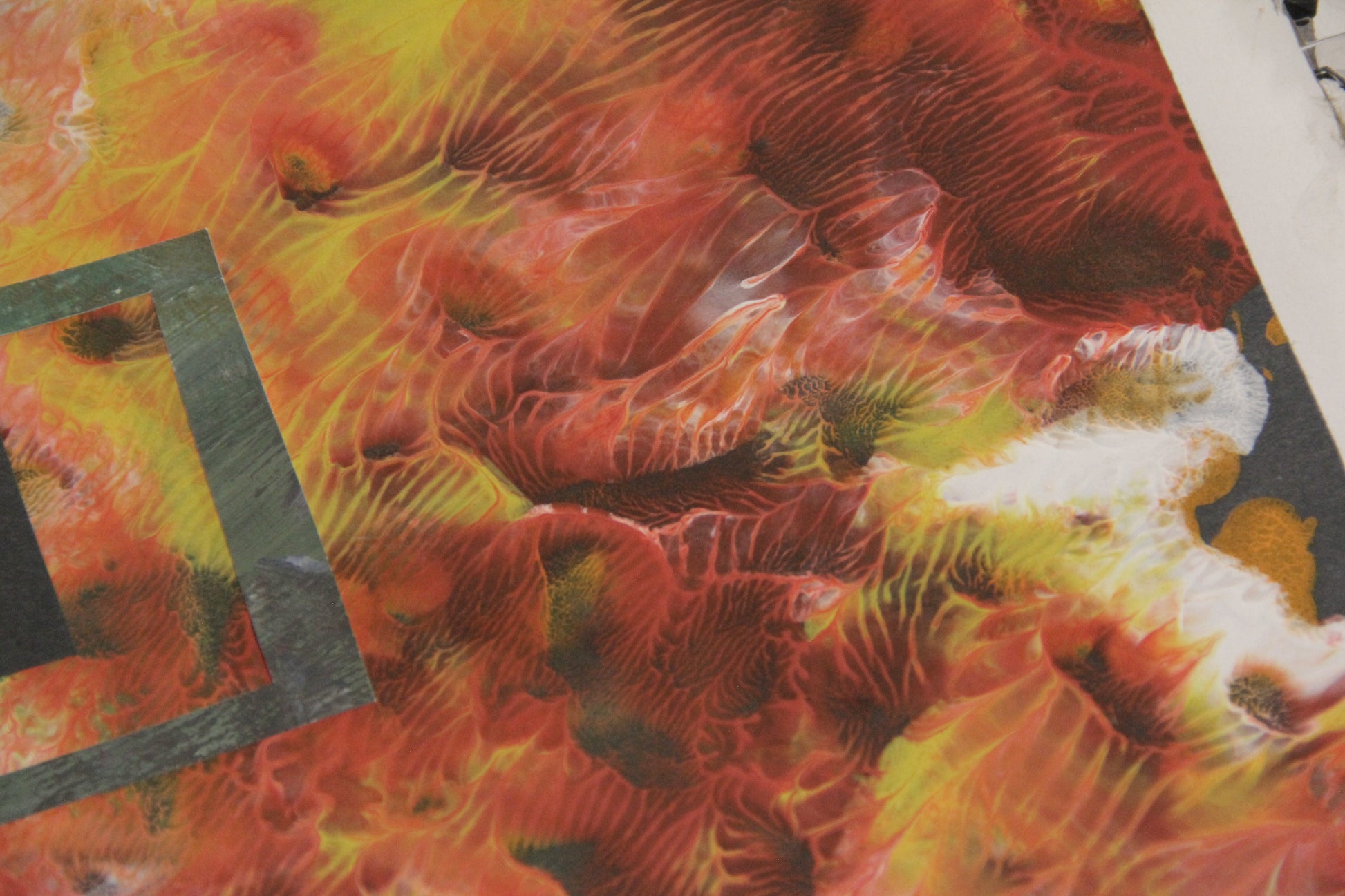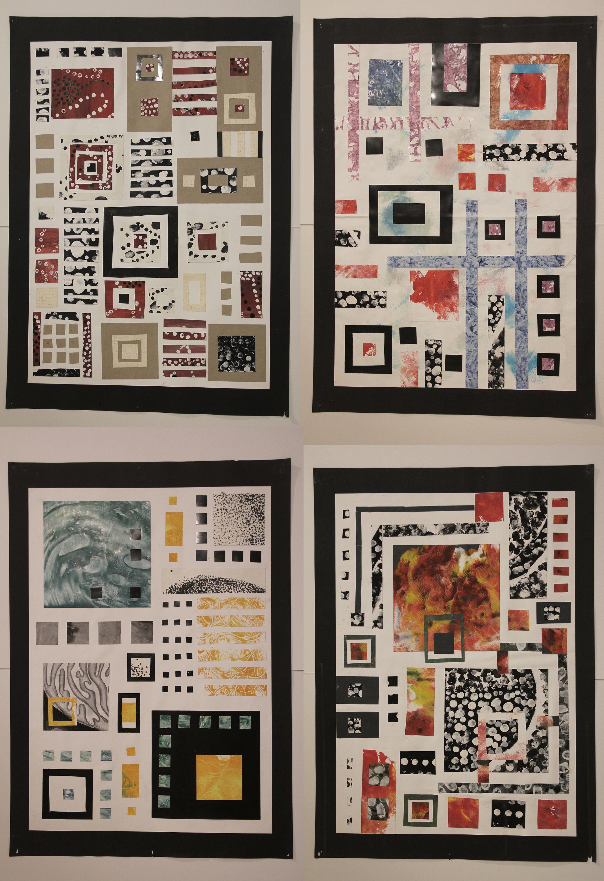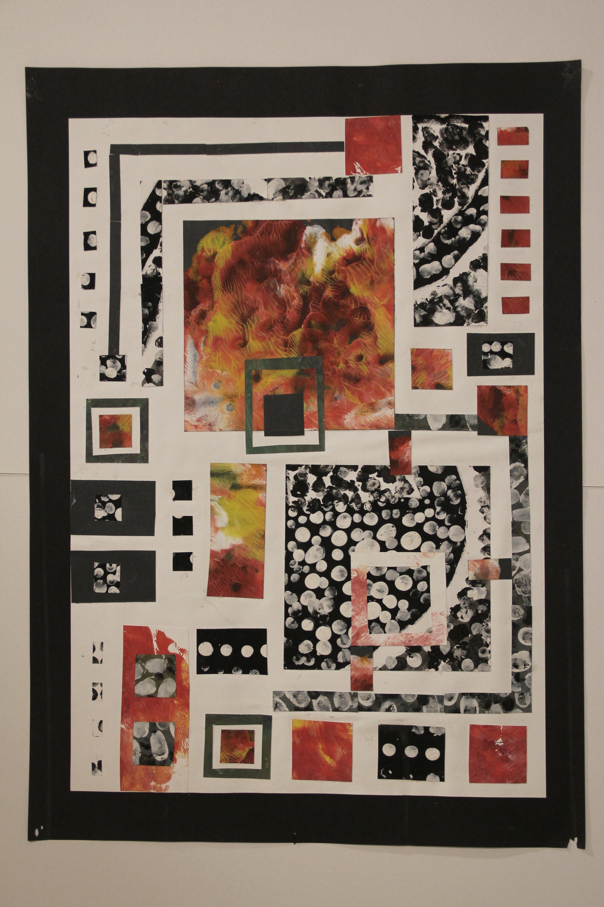 Absolventské práce zo Základnej Umeleckej Školy, každé 50cm x 70cm, vytvorené v roku 2014. Séria štyroch abstraktných diel skúmajúcich prírodné živly, textúru, farbu a emóciu. Každé dielo používa kombinované techniky, ako akryl, enkaustiku, a koláž výstrižkov zo starších diel, čo tvorí hravú kompozíciu. Spolu predstavujú prvotné skúmanie materiálu a pocitu – kde sa to všetko začalo.