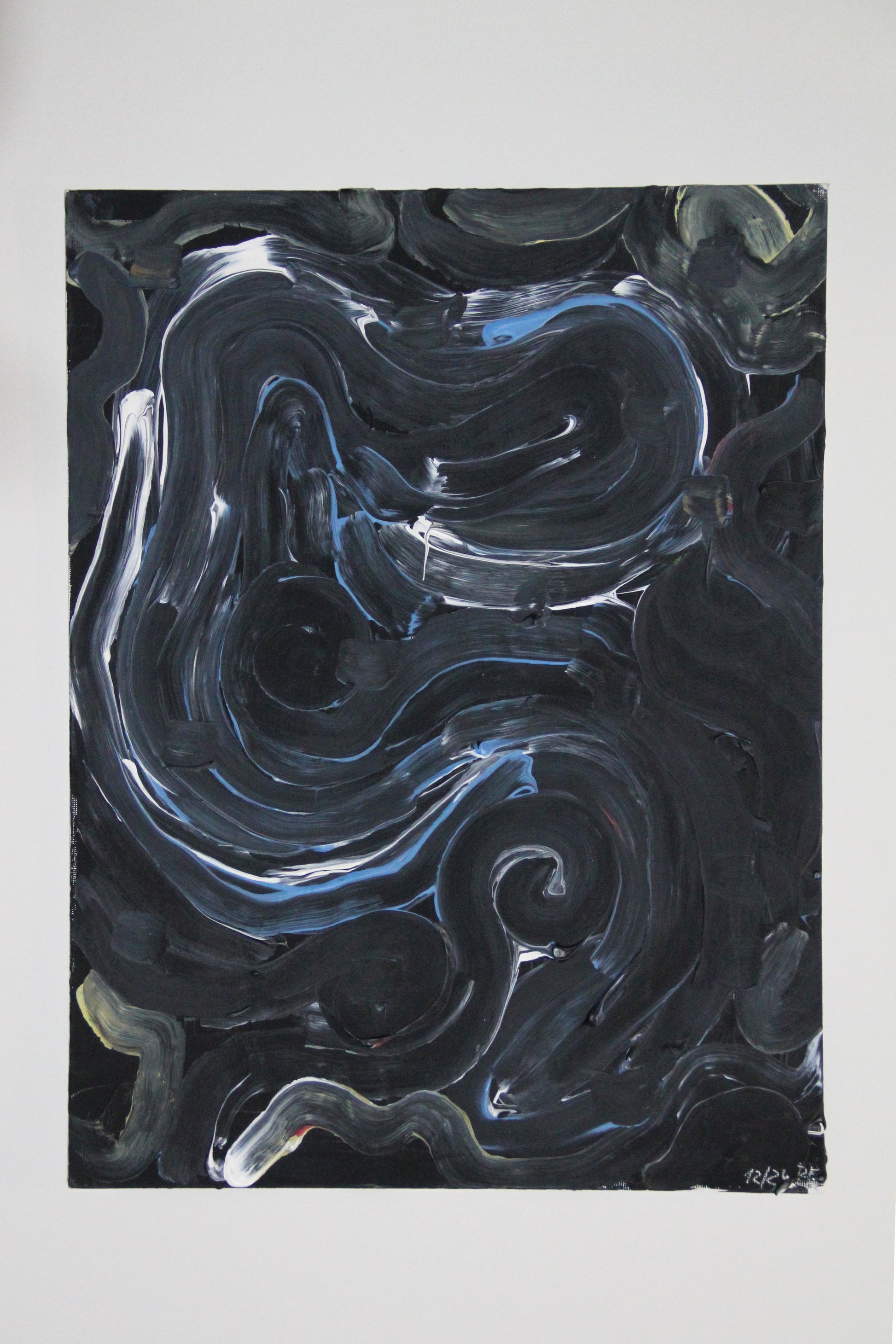 V noci, súčasť série Snake. Akryl na tenkom plátne, 30cm x 40cm.