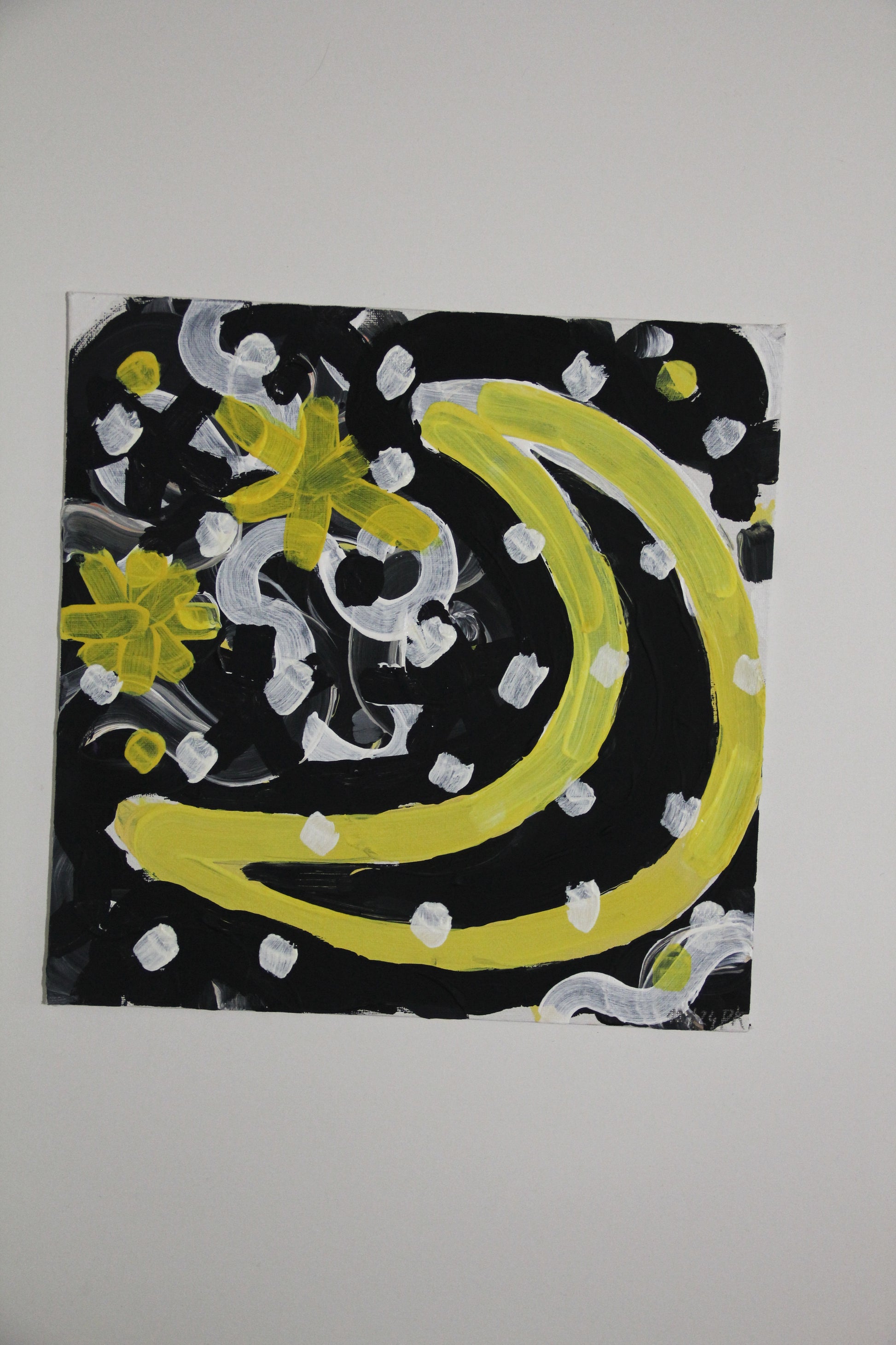 Zimná nočná obloha v Amerike, akryl na tenkom plátne, 30cm x 30cm.